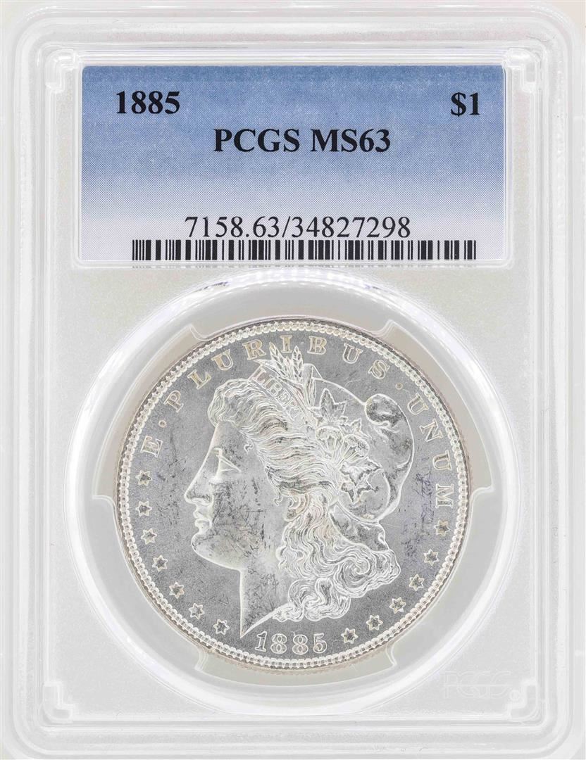 One 1885 $1 Morgan Silver Dollar Coin PCGS MS63.