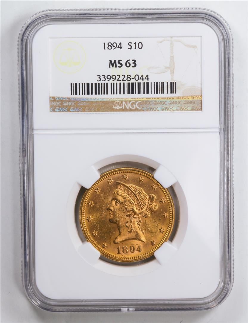 One 1894 $10 Eagle Gold Coin NGC MS63.