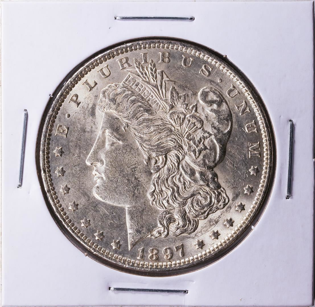 One 1897 $1 Morgan Silver Dollar Coin CH BU.