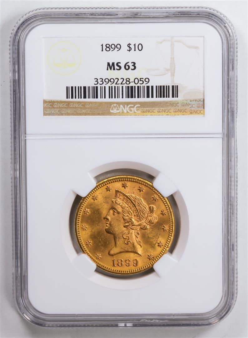 One 1899 $10 Eagle Gold Coin NGC MS63.