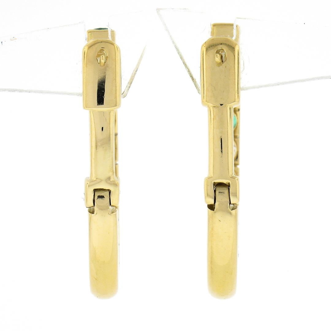 18K Gold 2.74 ctw Alternating Round Diamond & Emerald Oval Hoop Huggie Earrings