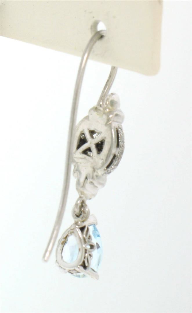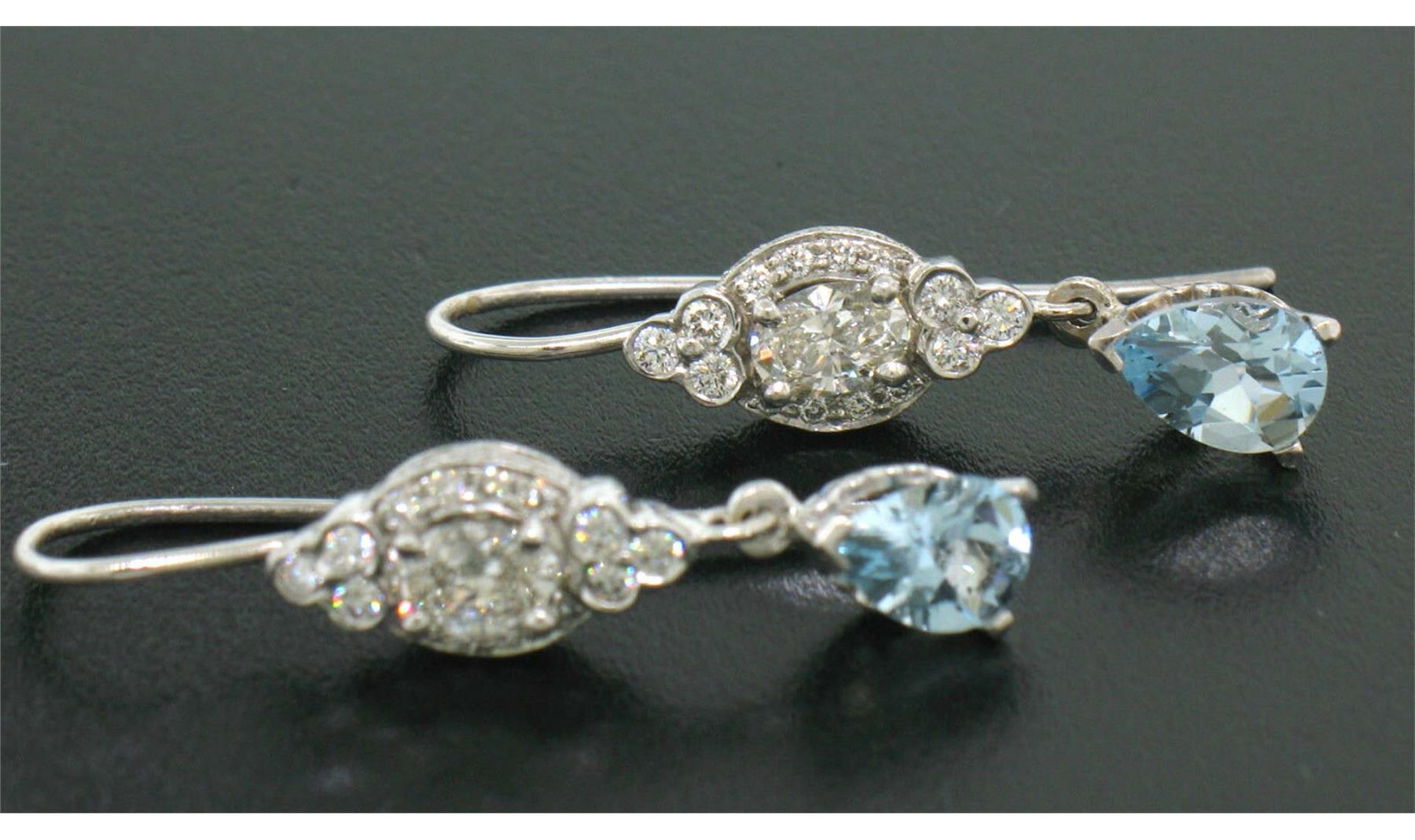 One Pair 18k White Gold 3.26ctw Pear Aquamarine Oval & Round Diamond Drop Dangle Earrings. Item Details: Material: 18K Solid White Gold, Weight: 5.40 Grams , Stone: (2) Natural Genuine Aquamarines - Pear Cut - Prong Set - Pleasant Sky Blue Color - 2.00 ctw (approx.), (2) Natural Genuine Diamonds - Oval Cut - Prong Set - I Color - VS1 Clarity - 0.76ctw (approx.), (48) Natural Genuine Diamonds - Round Brilliant Cut - Bezel and Pave Set - G/H Color - VS1 Clarity - 0.50 ctw (approx.), Dimensions: 6.78x29.01mm, Backings: French Hook (Pierced ears are required.), Condition: New w/o Tags