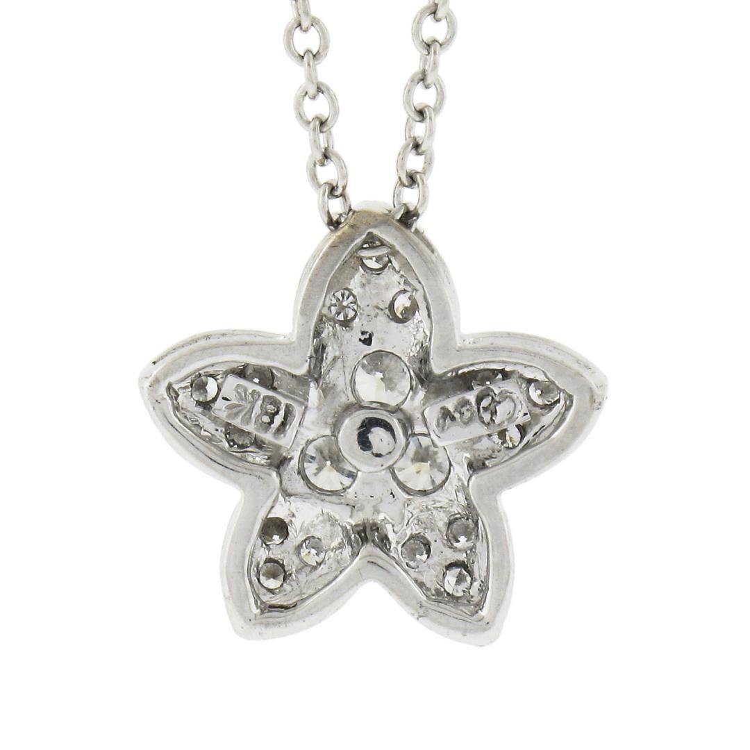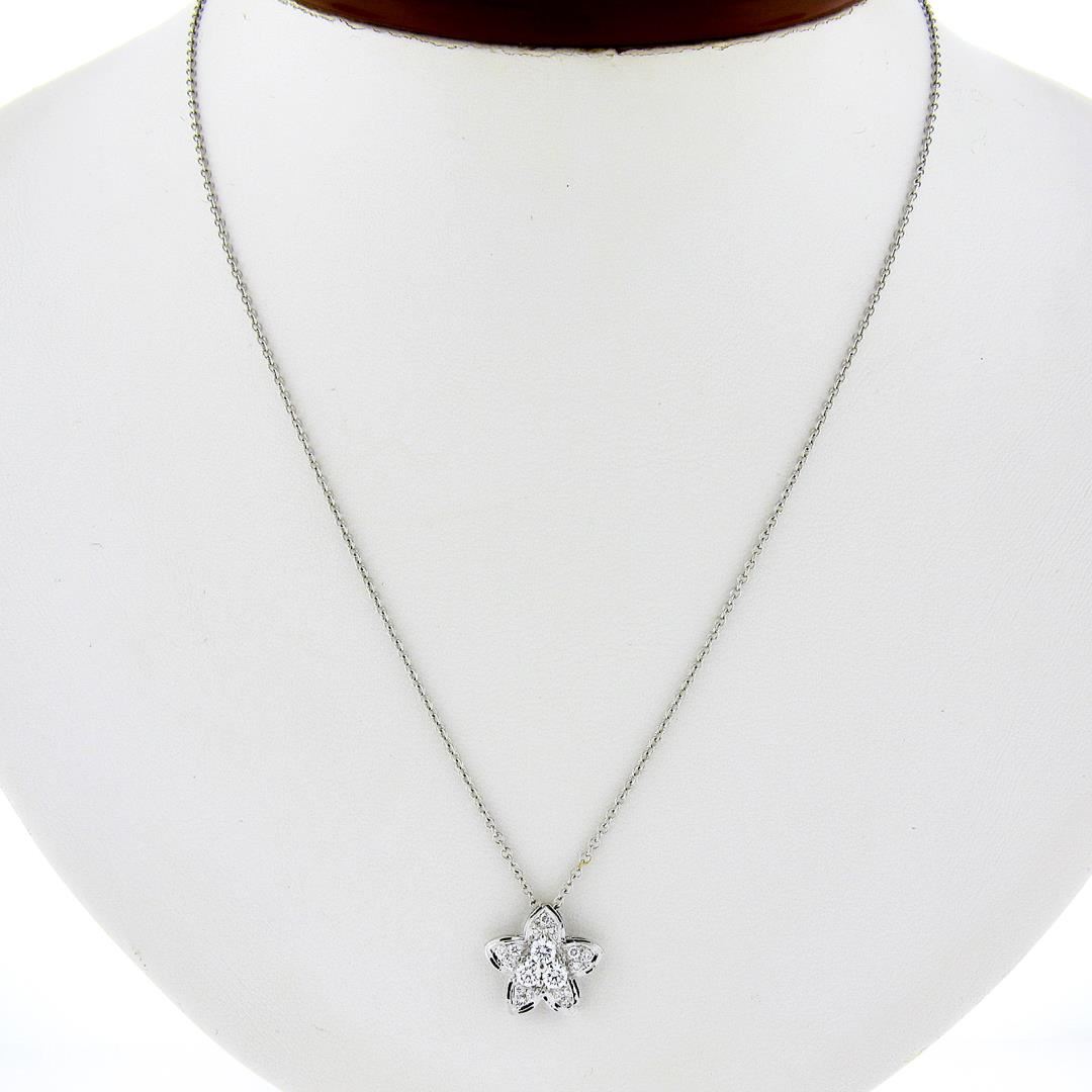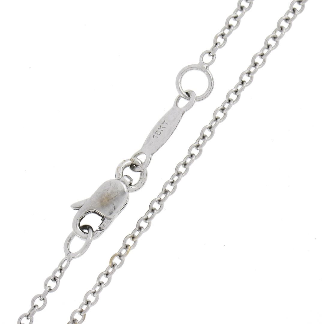 A solid 18k white gold pendant necklace, with 18 round brilliant cut natural diamonds (F/G - VS1/VS2 ; 0.35ctw). Adjustabel 16 or 18 inch cable link chain, 3.71 grams total weight, pendant measures 12.35x13.15mm.