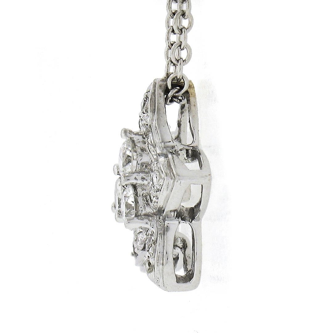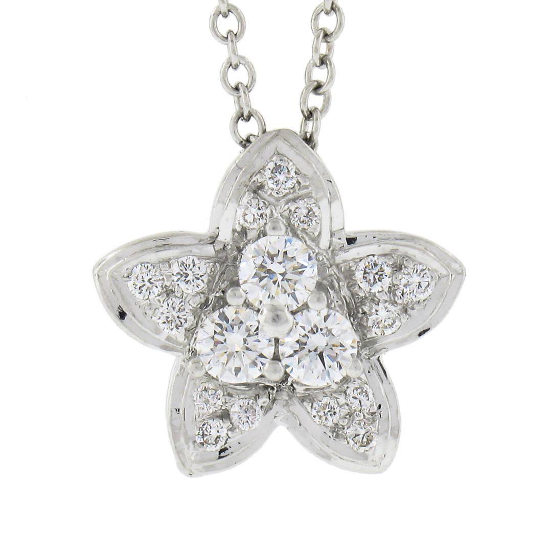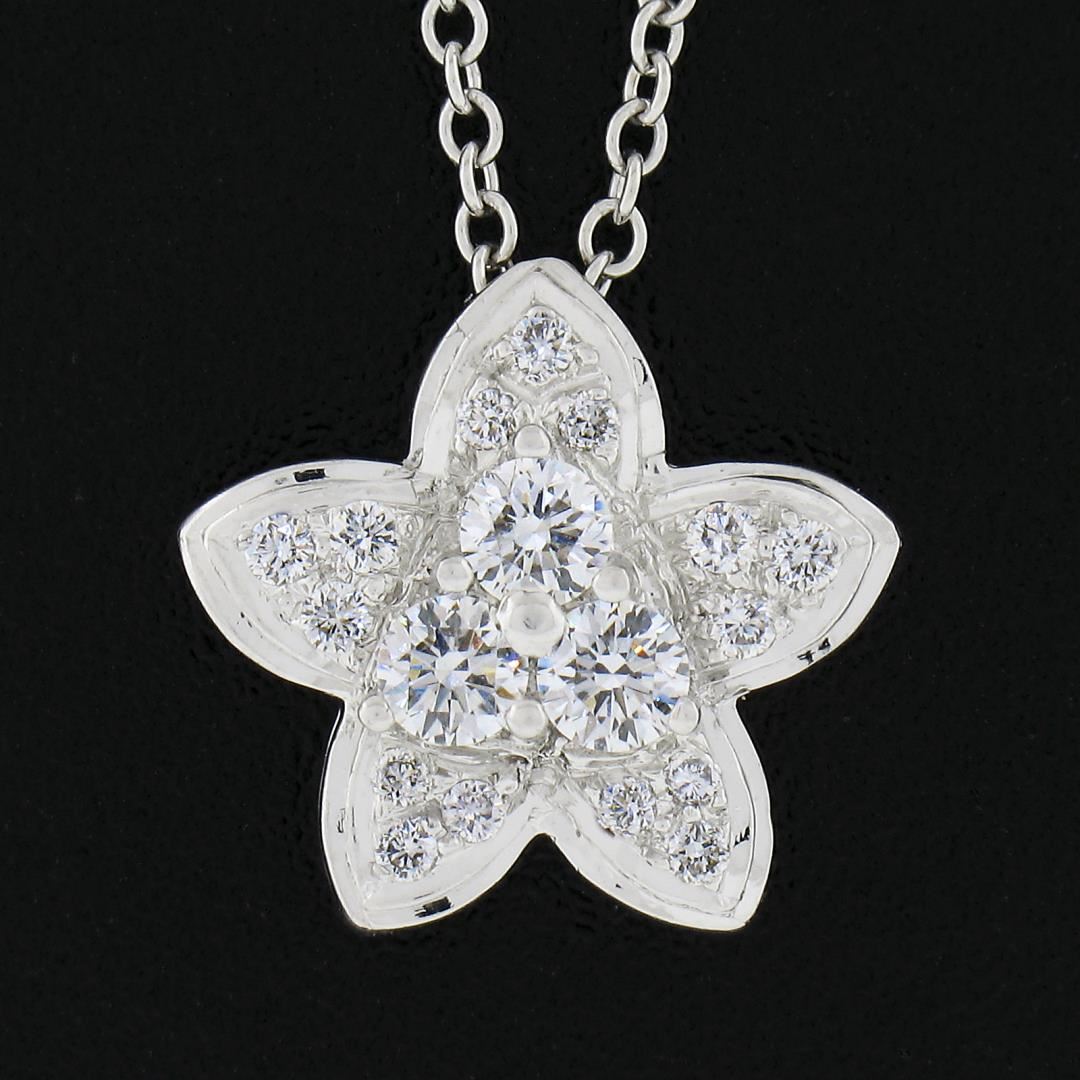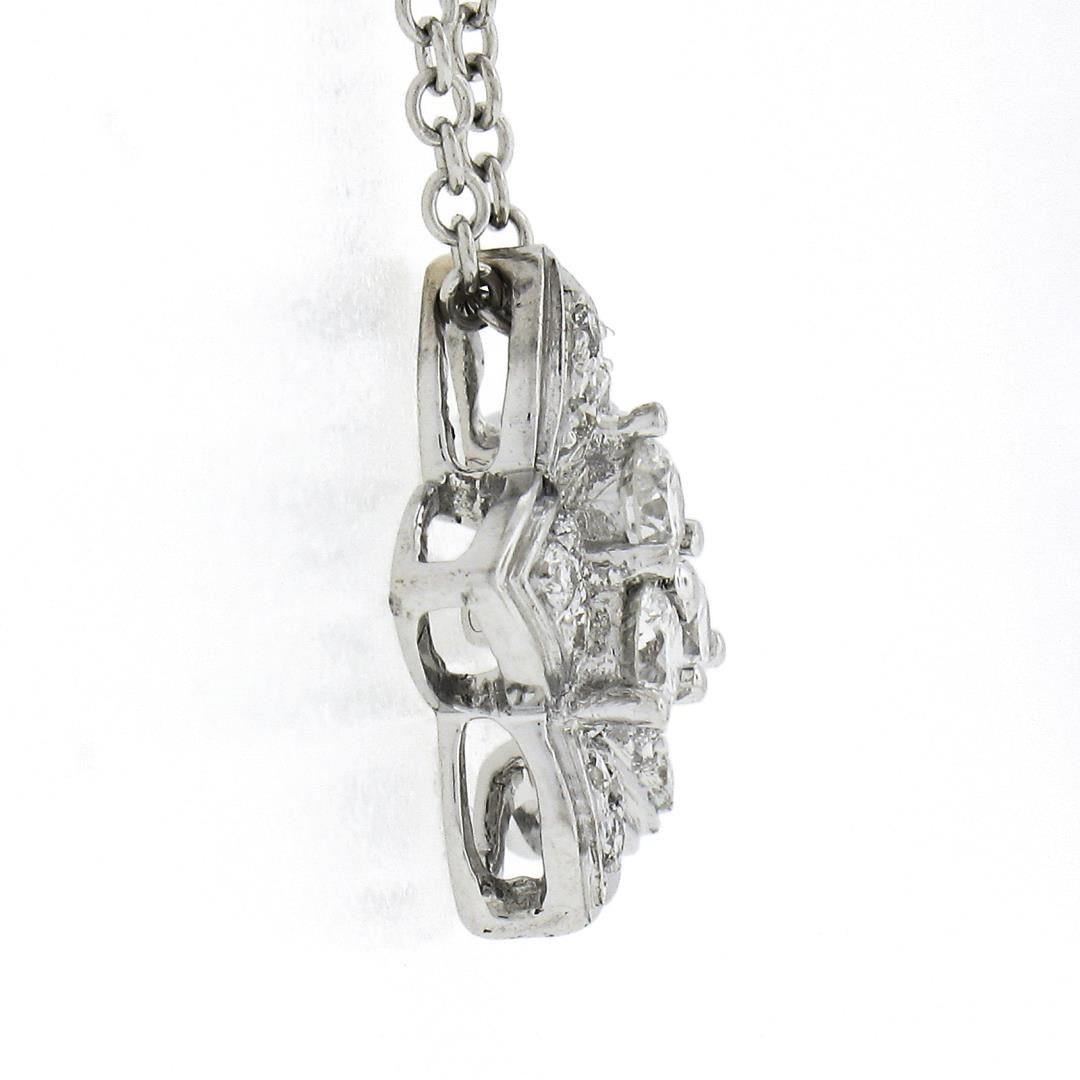 A solid 18k white gold pendant necklace, with 18 round brilliant cut natural diamonds (F/G - VS1/VS2 ; 0.35ctw). Adjustabel 16 or 18 inch cable link chain, 3.71 grams total weight, pendant measures 12.35x13.15mm.