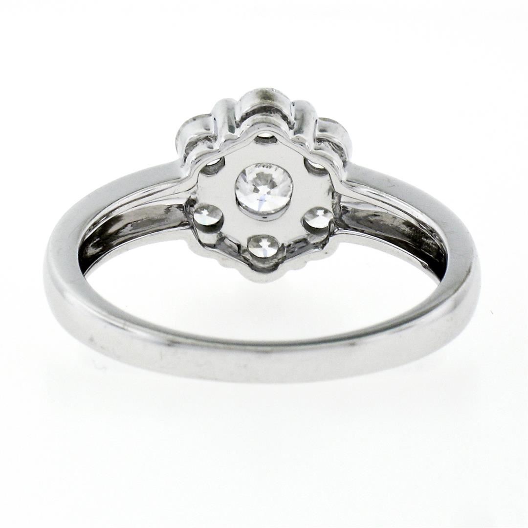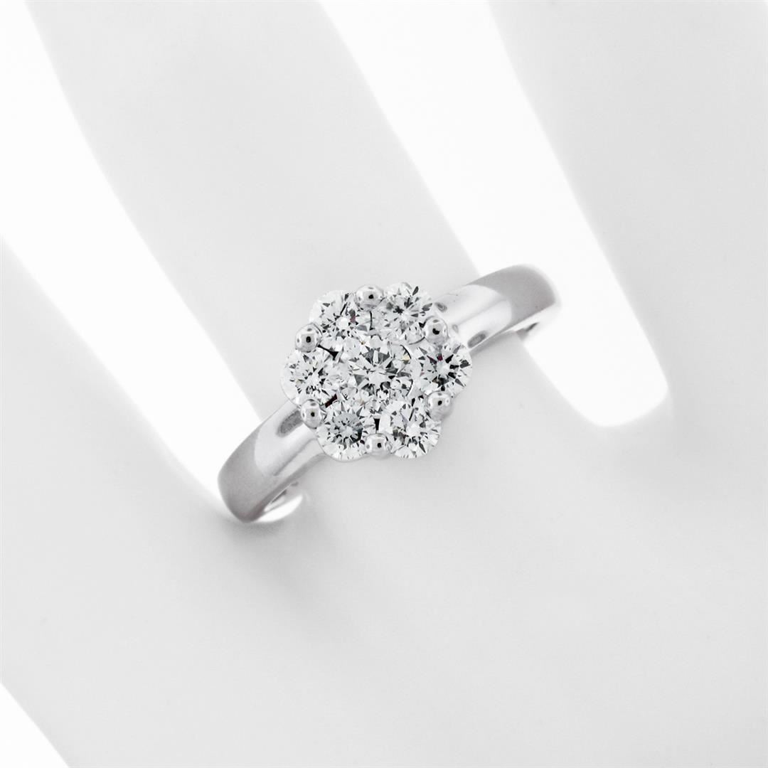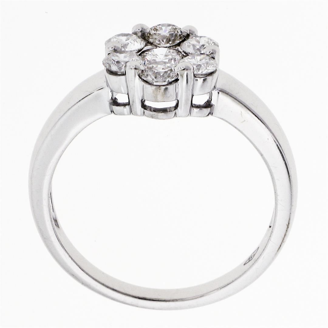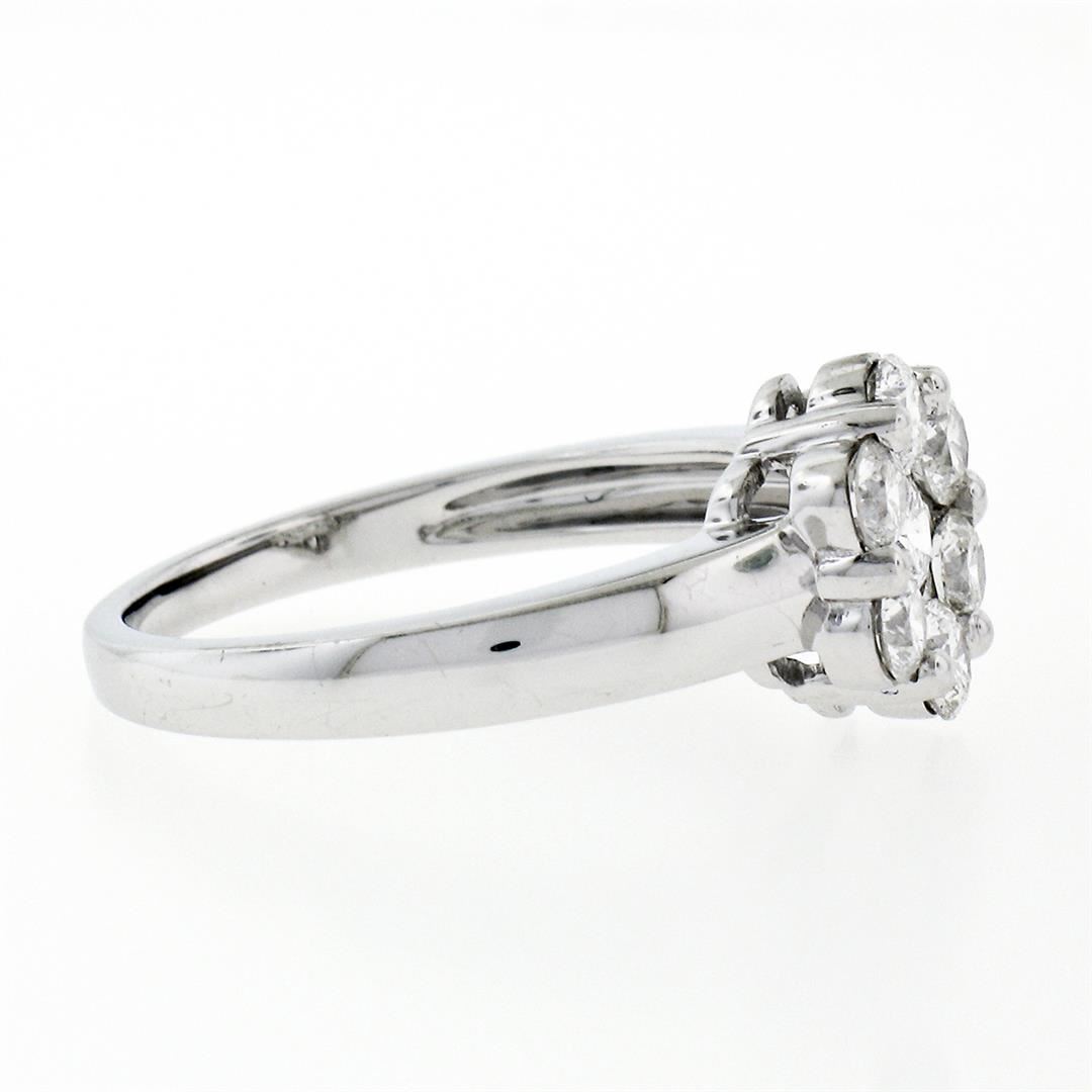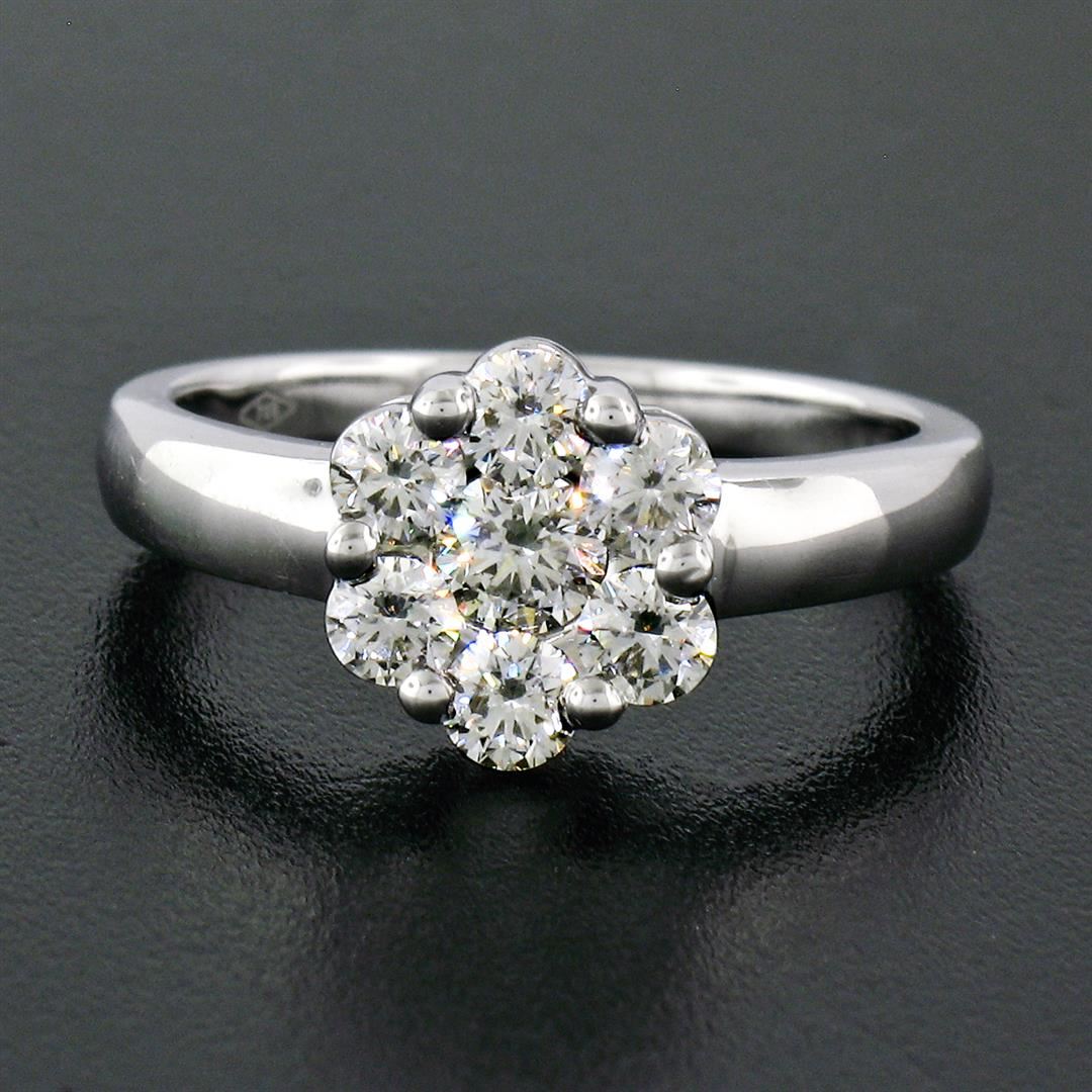 An estate solid 18k white gold ring, with 7 idal round brilliant cut natural diamonds (F/G- VS1/VS2; 0.84ctw). The ring is size 6.5, weighs a total of 3.92 grams, and measures 9.50mm wide.