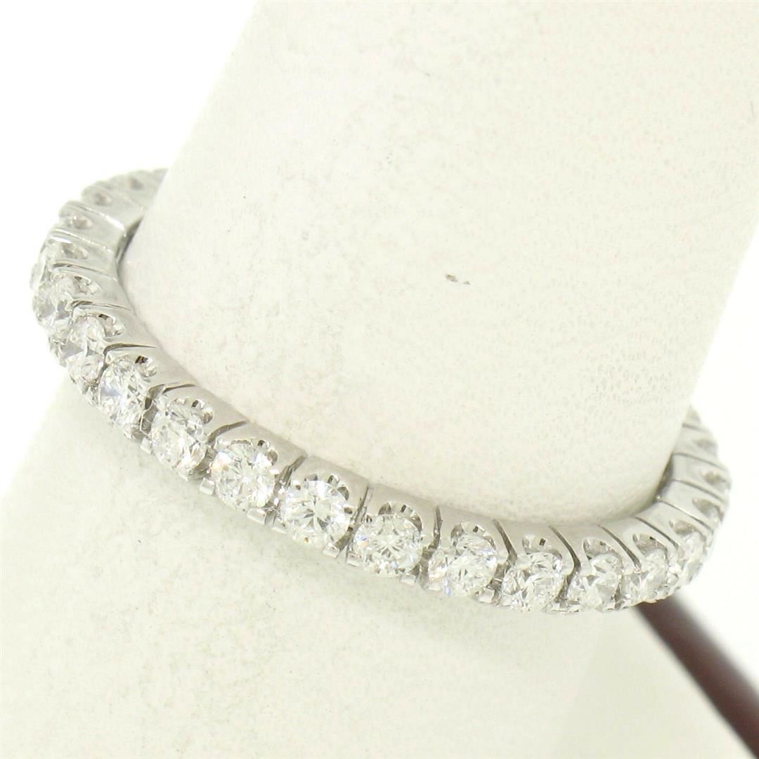 One 18K White Gold 1.0ctw F VS1 Round Brilliant Prong Set Diamond Eternity Band Ring. Item Details: Material: 18k Solid White Gold, Weight: 2.5 Grams, Stone(s): (29) Natural Genuine Diamonds - Round Brilliant Cut - Prong Set - F/G Color - VS1 Clarity, Total Carat Weight: 1.00 (approx.), Ring Size: 8.0 (We can not custom size this ring.), Ring Width: 2.2mm, Ring Height: 2.2mm rise off the finger, Condition: Like New!