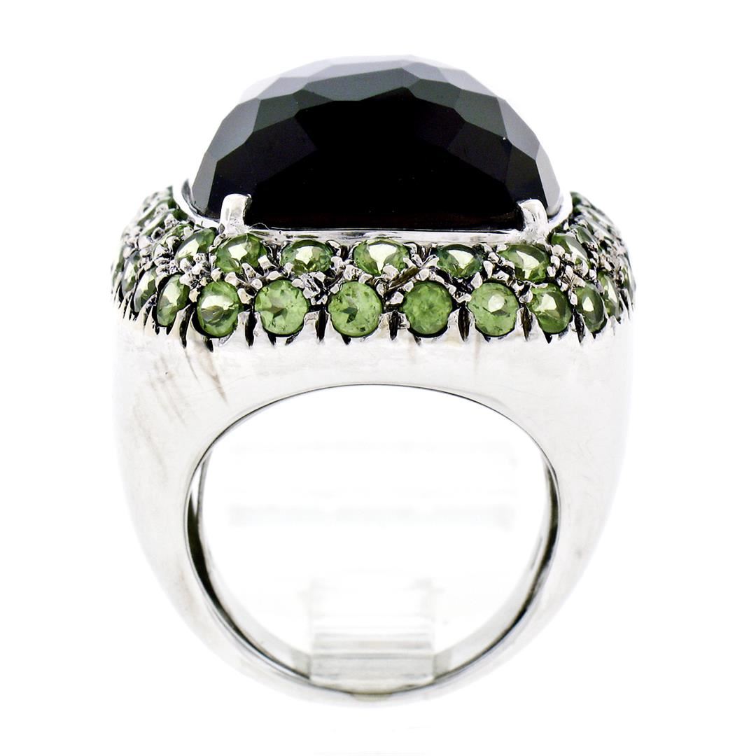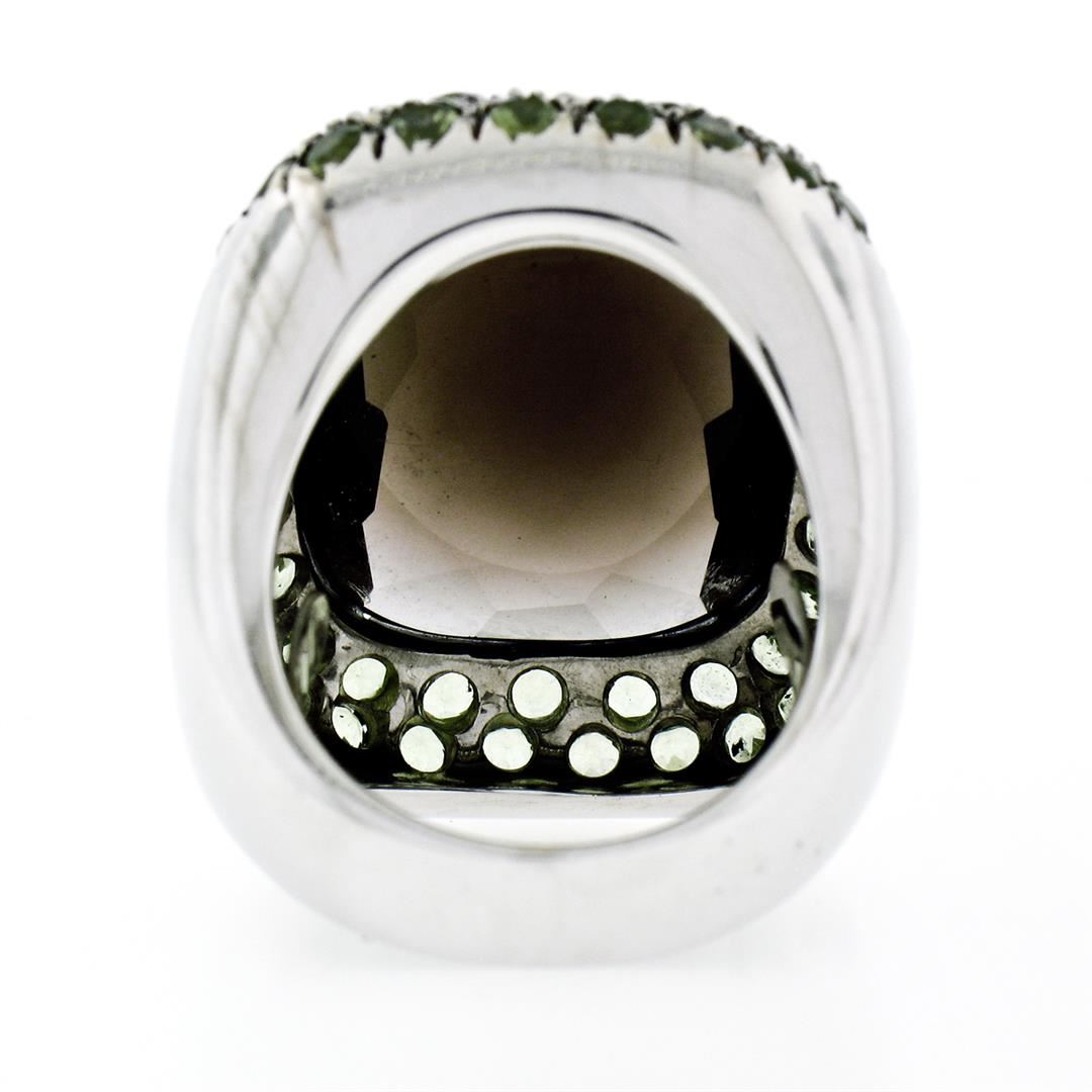 18K White Gold 37.60 ctw Large Faceted Smokey Topaz Solitaire & Peridot Halo Rin