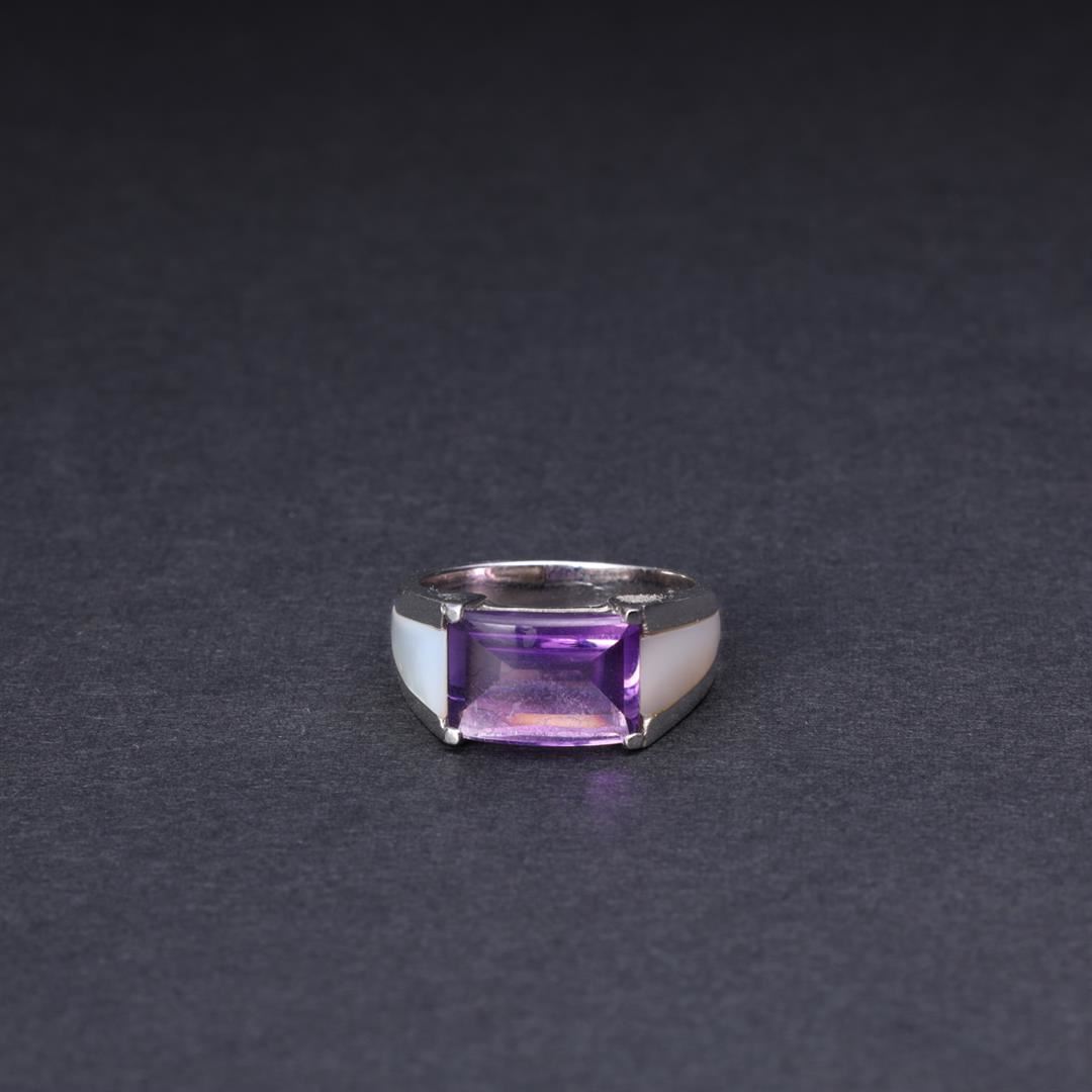 18K White Gold & Amethyst Ring. Total weight is 7.7 gm. Estimated retail value $2,400.