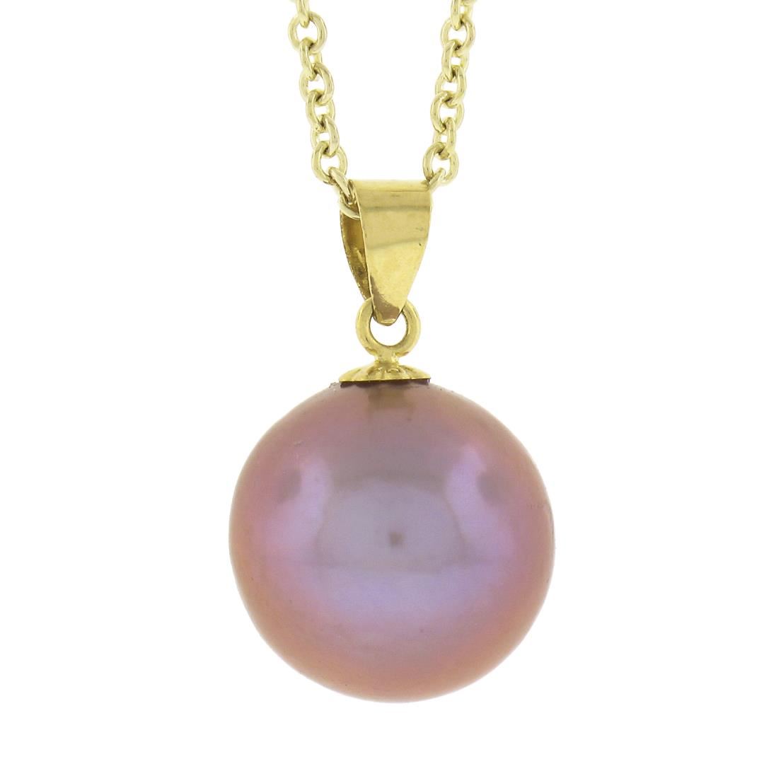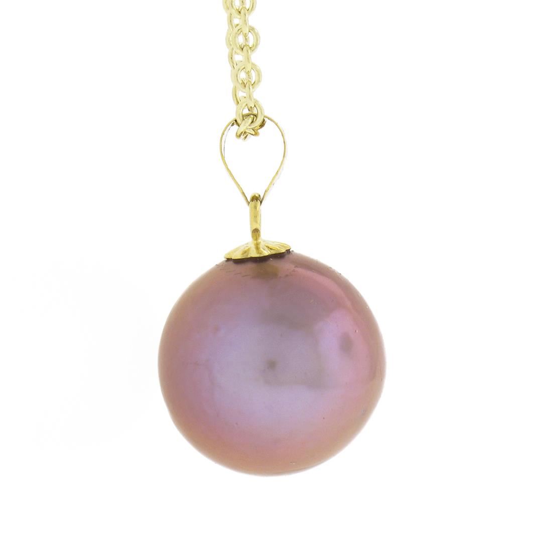 18K Yellow Gold 10.3mm Pink Pearl Solitaire Pendant 18" Cable Chain Necklace