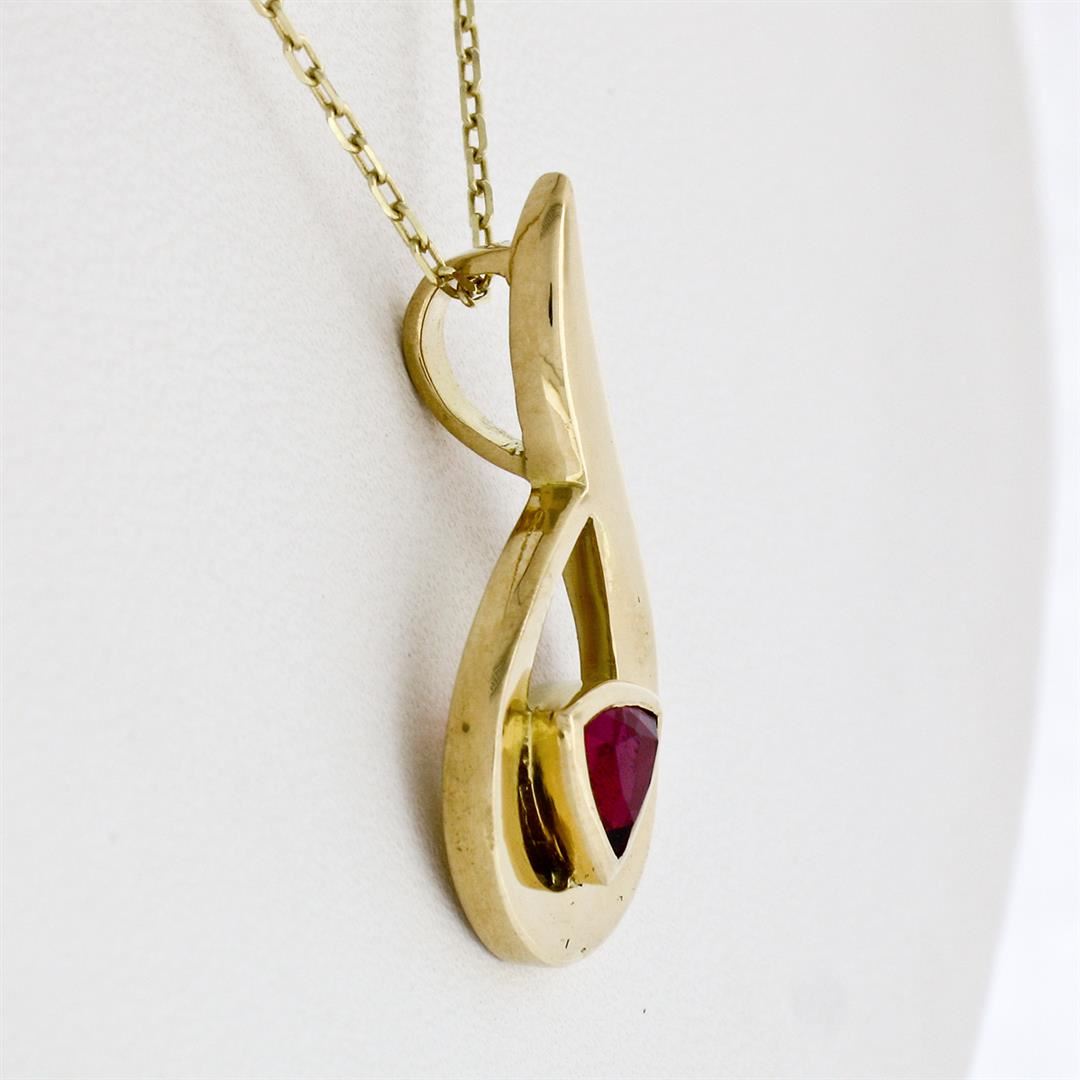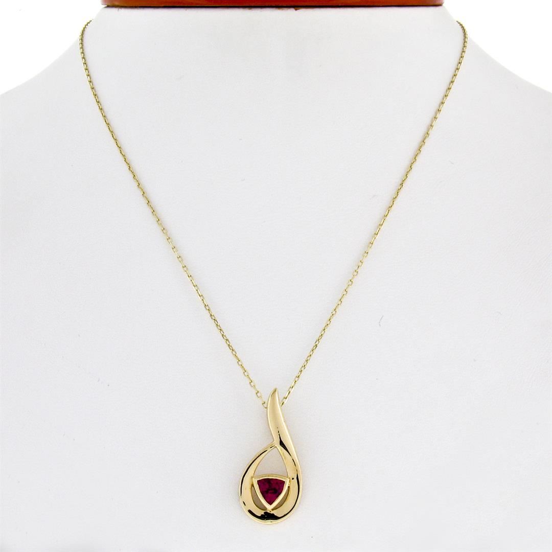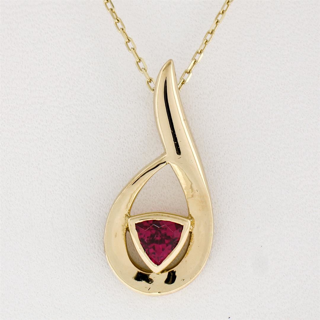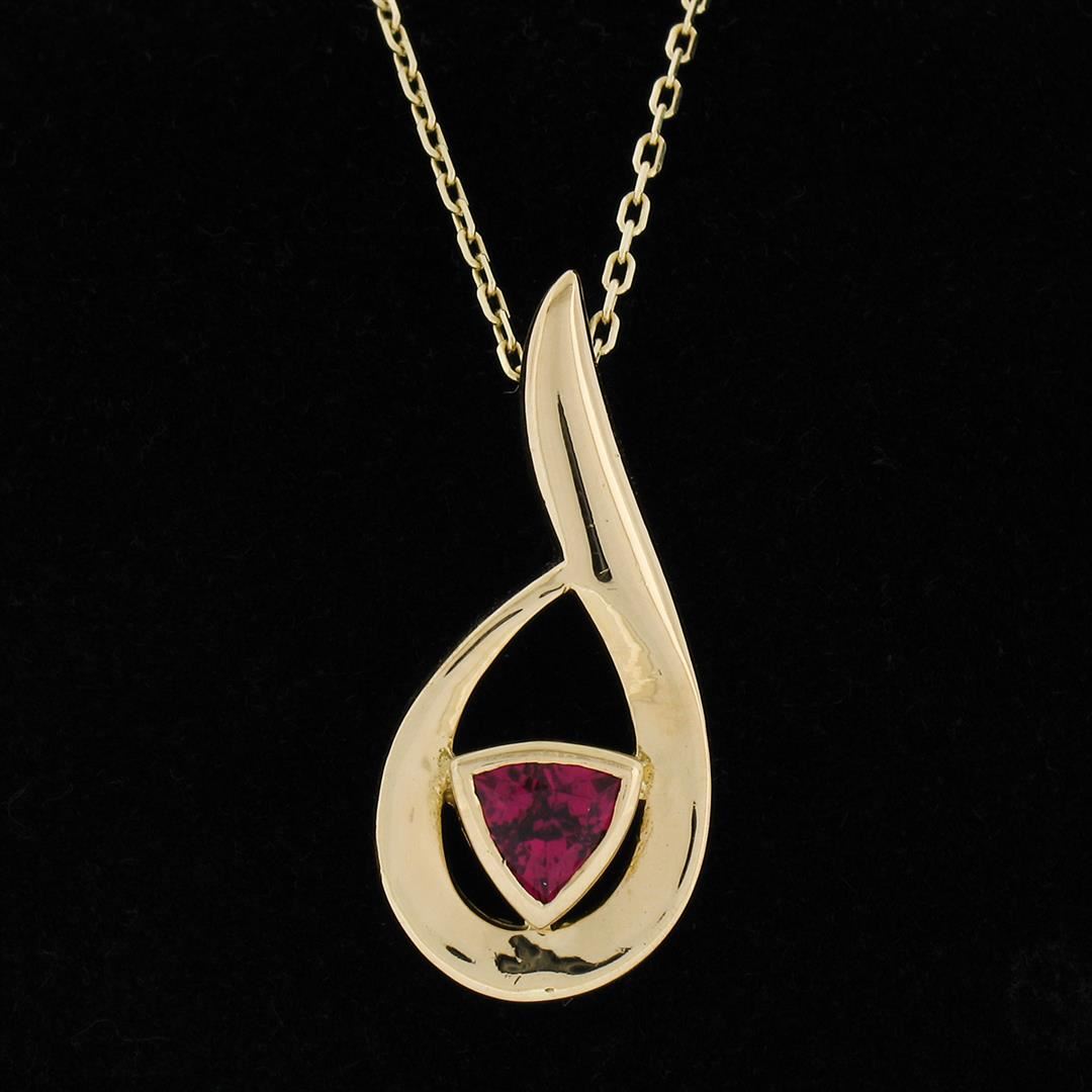 18K Yellow Gold .55 ctw Trillion Cut Tourmaline Solitaire Open Pendant & 16  Cha