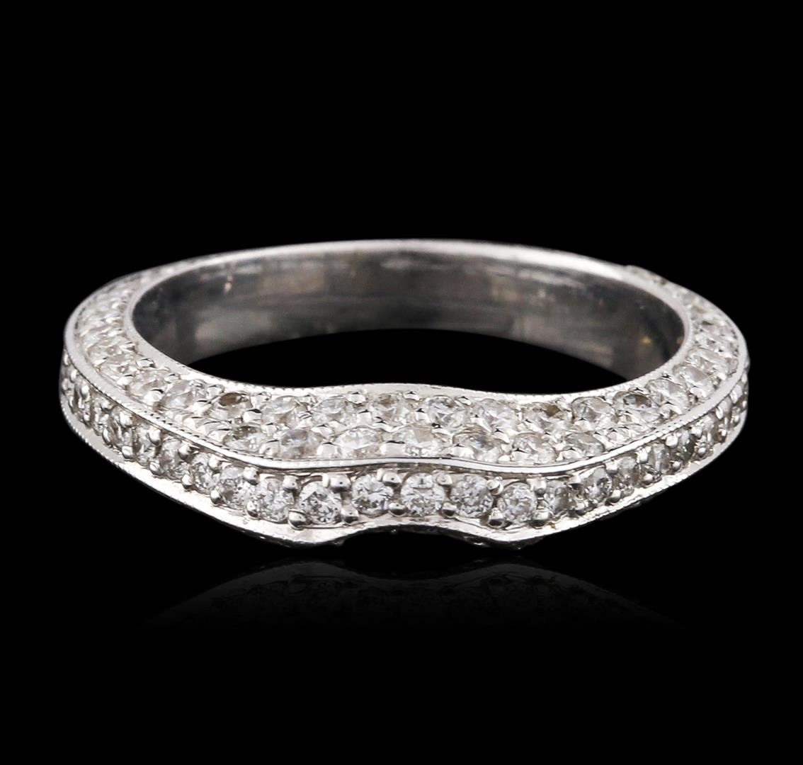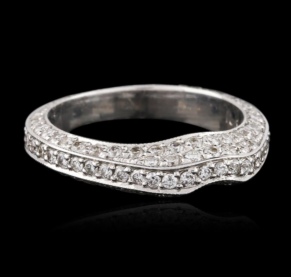 One electronically tested 18KT white gold ladies cast diamond ring with a bright polish finish. Trademark is Sonia B. Identified with markings of "18K". Condition is new. Containing: One Hundred Nine prong set round brilliant cut diamonds, measuring 1.00. - 1.00. x 0.60mm (depth est.) approximate total weight of 109 Stones = 0.39ct. Clarity: SI-1 to I-1. Color: H - I, Cut is Good. All diamonds are graded in the mounting, unless otherwise stated. Total Weight of Diamonds 0.39ct. Total Weight of Ring 4.00. grams. GGL Appraised.