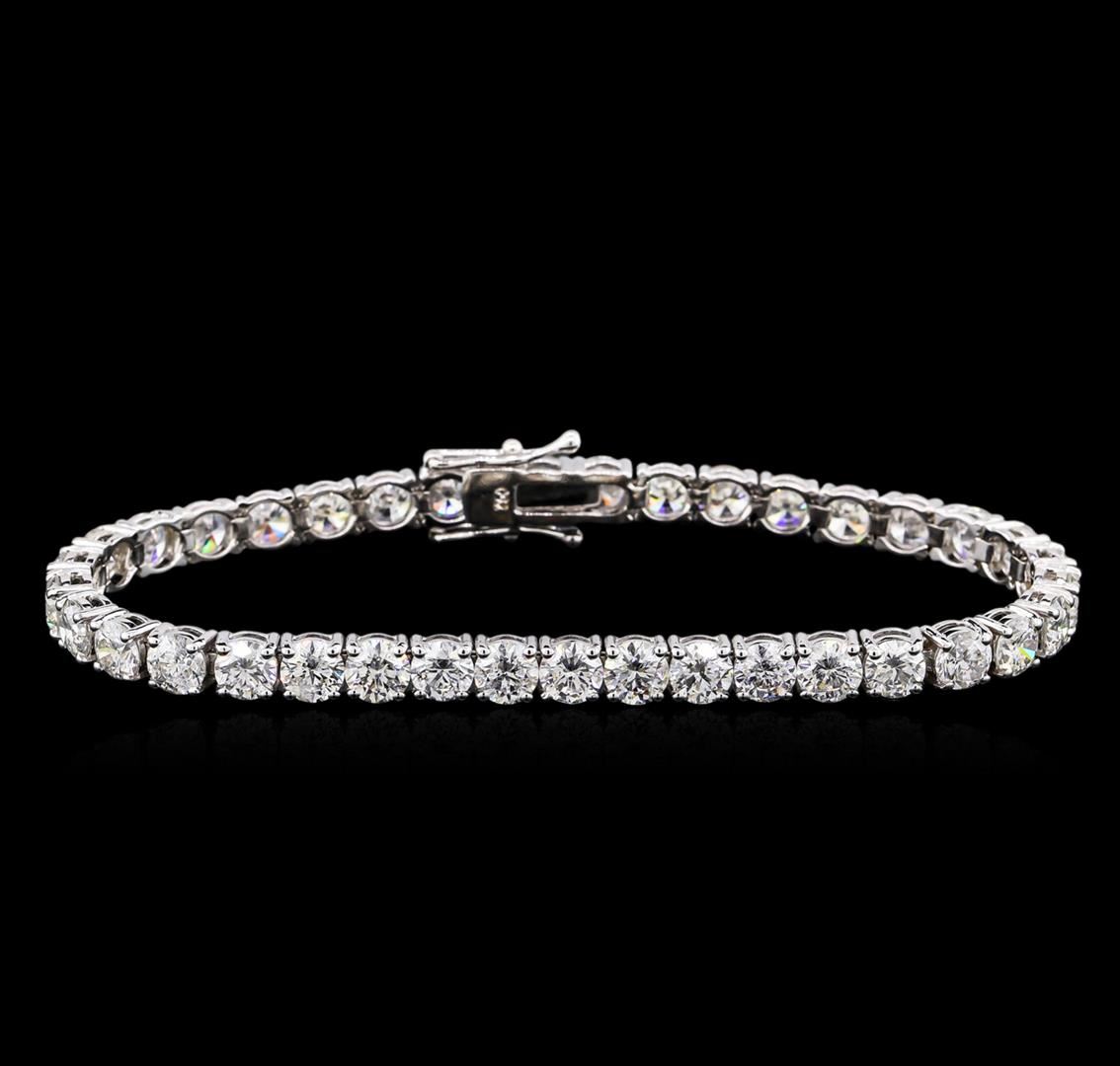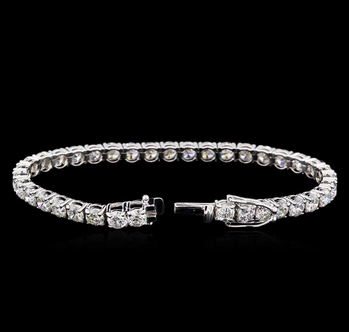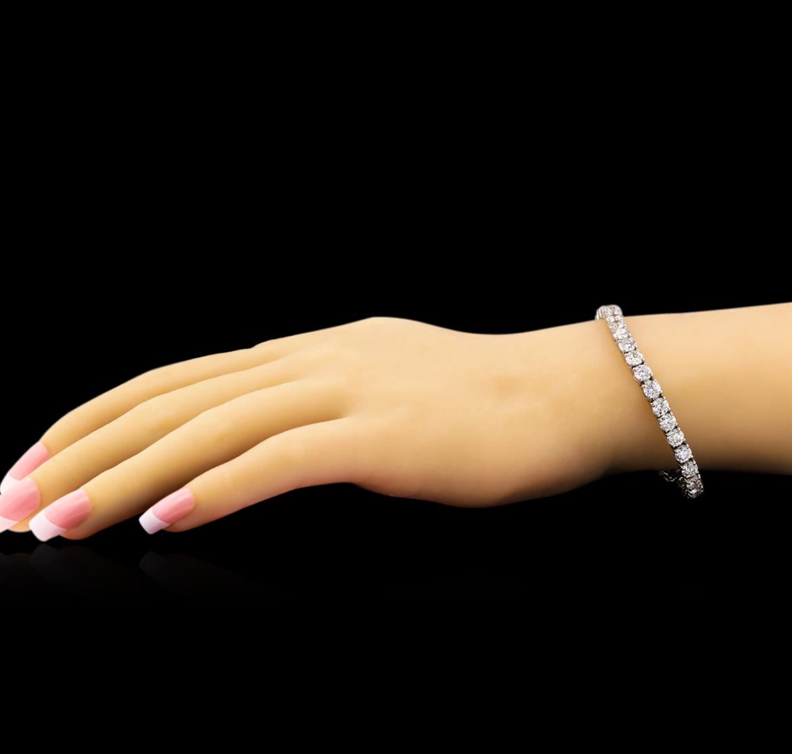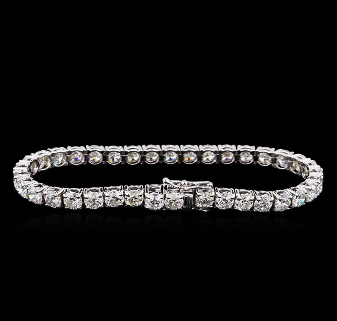 One electronically tested 18KT white gold ladies cast diamond tennis bracelet with a hidden box clasp with safety closer with a bright polish finish. Measurements: 7" in length Identified with markings of "750". Condition is new. Containing: Thirty-Seven prong set round brilliant cut diamonds, measuring 4.80 - 4.80 x 2.88mm (depth est.) approximate total weight of 37 Stones = 14.97ct. Clarity: SI-2 to I-2. Color: G - I, Cut is Good. All diamonds are graded in the mounting, unless otherwise stated. Total Weight of Diamonds 14.97ct. Total Weight of Tennis Bracelet 16.70 grams. GGL Appraised at $42,040.00.