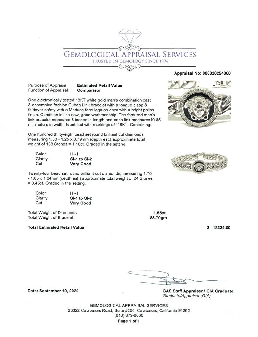 One 18KT White Gold Fashion Cuban Link. GAS Appraised. See Appraisal for details. GAS Appraised.