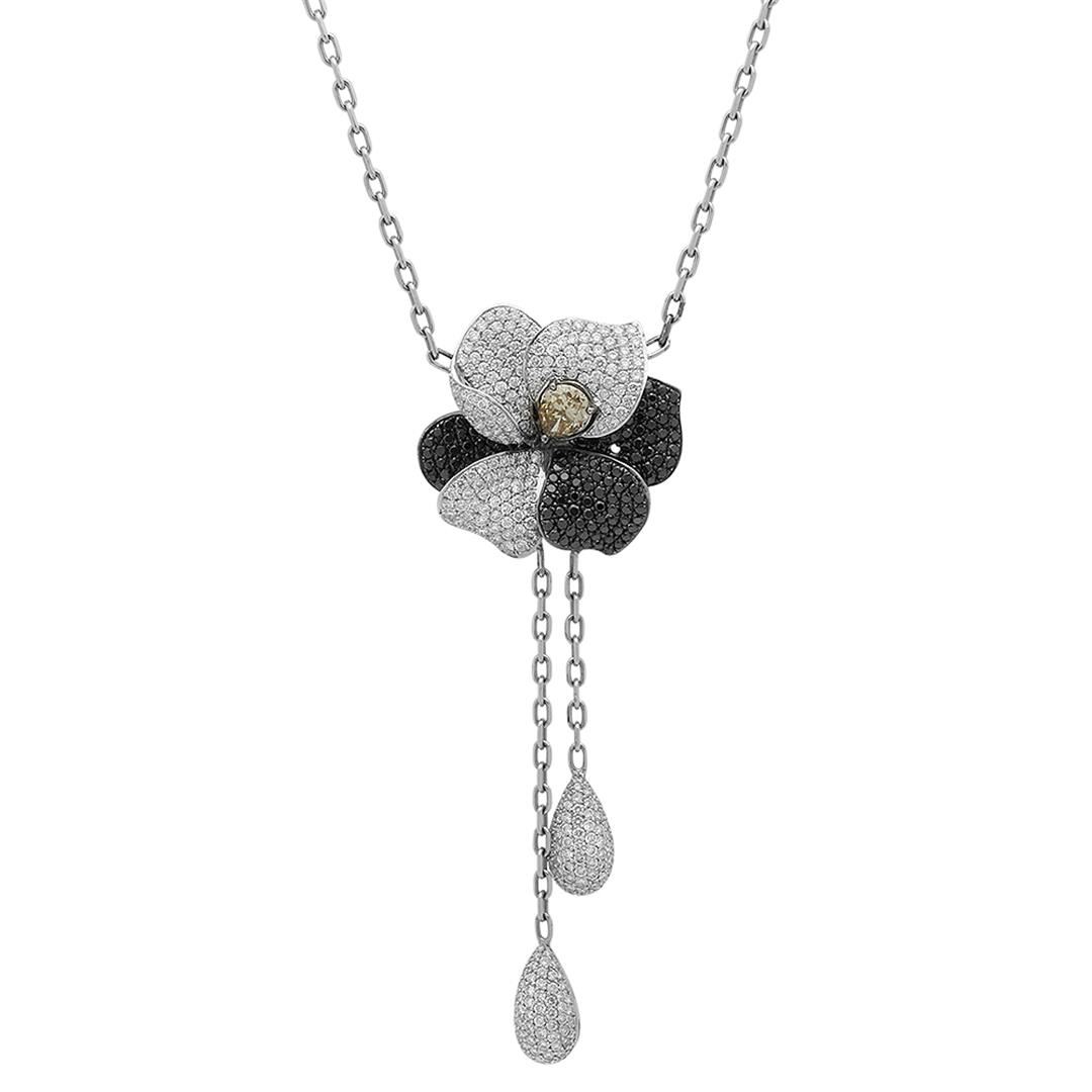 One 18k Gold 5.38CTW Diamond Necklace, (VS2 /G) - Product Specification: Stone: Diamond Stone 2 Custom: 140 Stone 2 Shape: Round Stone 2 Type: Black Diamonds Stone 2 Weight: 1.54 Stone 3: Brown Diamonds Stone 3 Custom: Women Stone 3 Weight: 0.8 Stone 4 Custom: VS2 / G Stone Clarity: VS2 Stone Color: G Stone Count: 337 Stone type: Round Stone Weight: 3.04 Weight: 1 Width: 28.0mm
