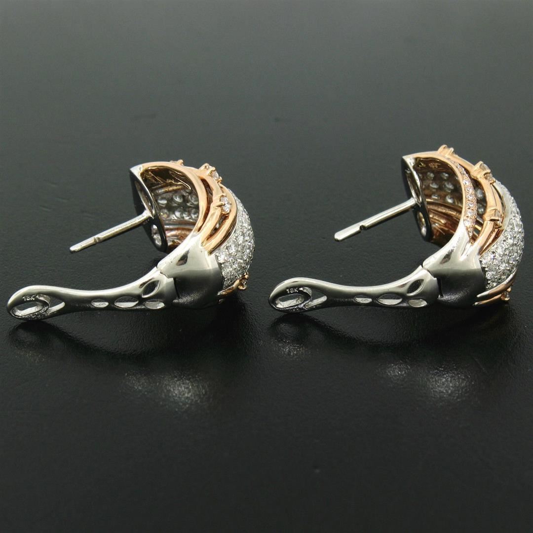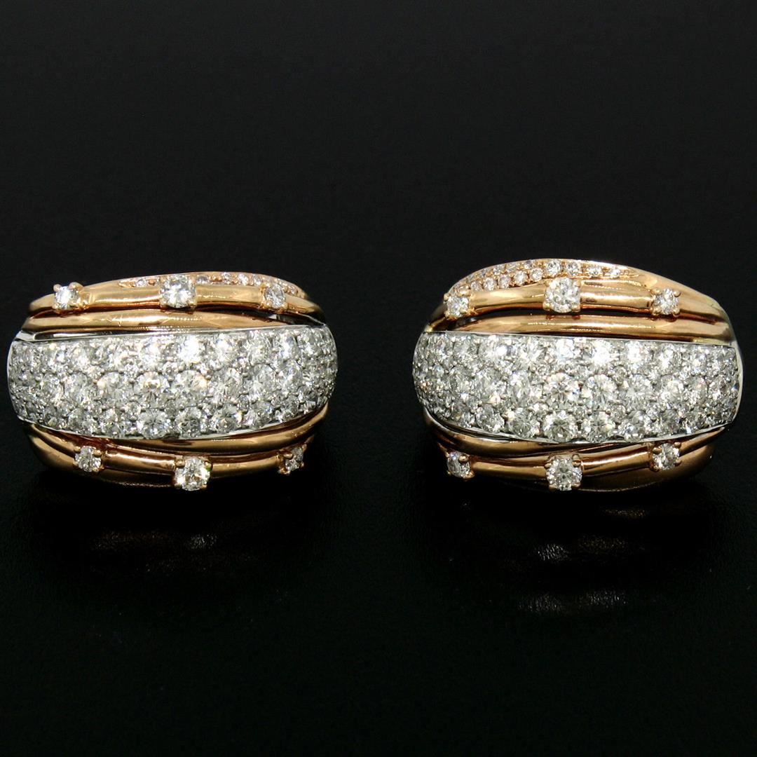A new solid 18k rose and white gold cuff earrings, featuring 174 round brilliant cut natural diamonds (F/G- VVS2/VS1; 2.62ctw). The earrings measure approximately 20.50x14.25mm and weigh a total of 10.70 grams.