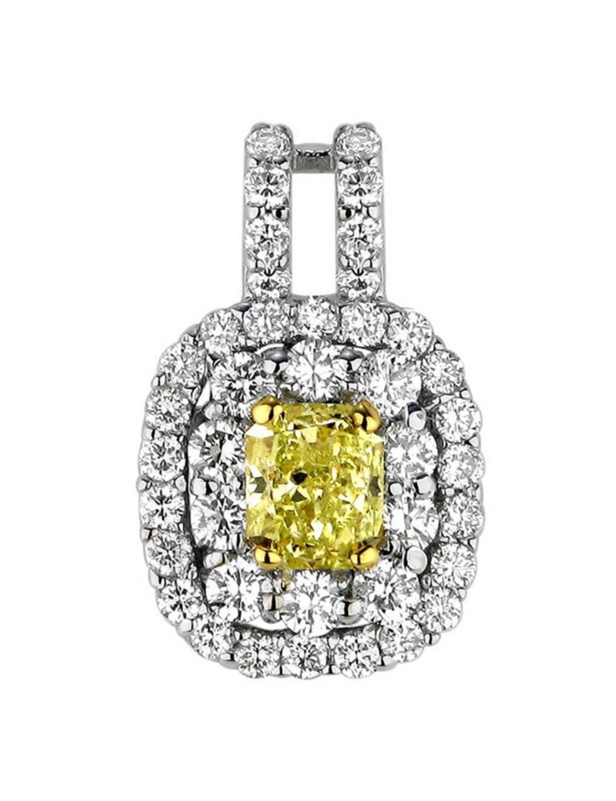 One 18k Two Tone Gold 1.13CTW Diamond Pendant, (VS1-SI1/VS1 /G-H/Nat-yel) - Product Specification: Stone: Diamond Stone 2 Clarity: VS1-SI1 Stone 2 Color: G-H Stone 2 Shape: Round Stone 2 Type: Diamond Stone 2 Weight: 0.62 Stone 4 Custom: VS1 / NAT-YEL Stone Clarity: VS1 Stone Color: Nat-yel Stone Color to: YEL Stone type: Radiant Stone Weight: 0.51 Weight: 1 Width: 10.0mm