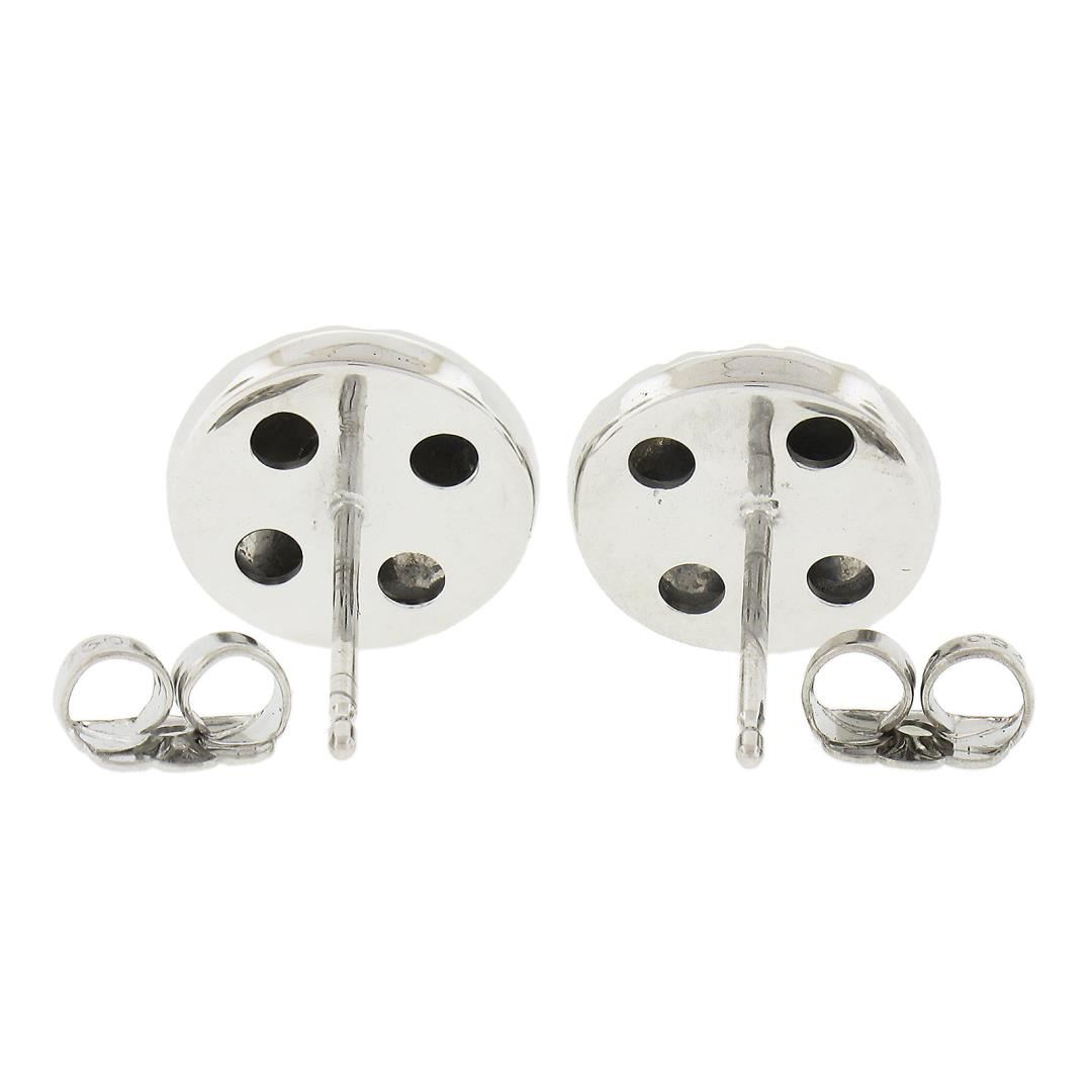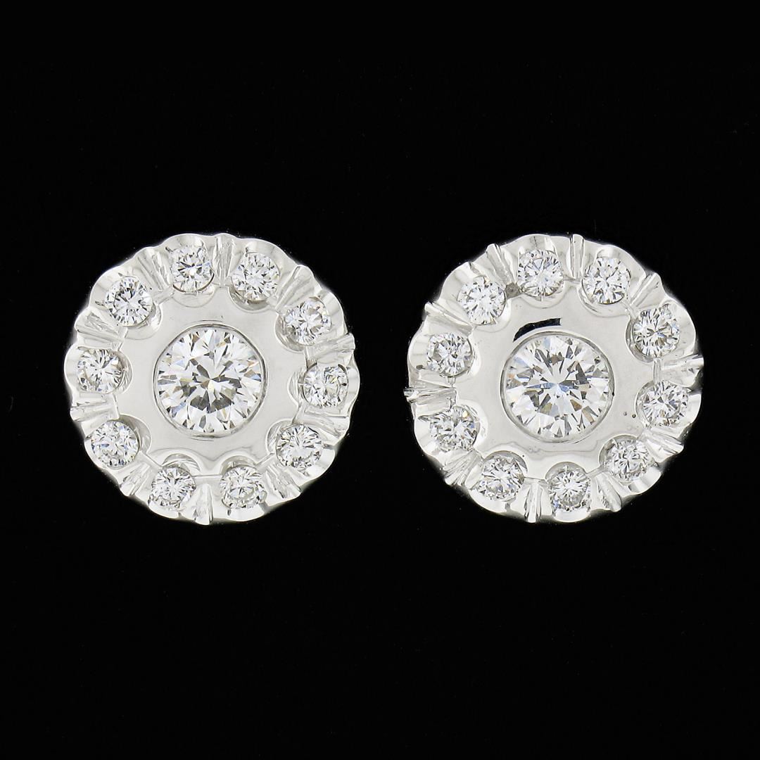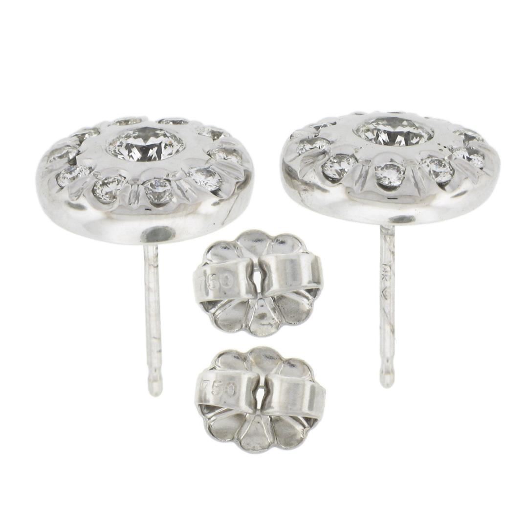 A solid 18k white gold stud earrings, with 22 round cut natural diamonds (F-H - VS1-SI1 ; 0.80ctw). The earrings measure approximately 10.4mm and weigh a total of 4.2 grams.