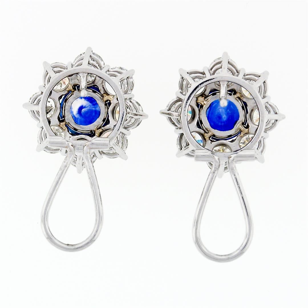 A pair of solid 18k white gold flower earrings with 2 GIA certified round brilliant cut natural sapphires (7.32 - 7.35 and 7.33 - 7.43; 3.70ctw), surrounded with 16 round brilliant cut natural diamonds (G/H - VS2/SI1; 4.80ctw). The earrings measure approximately 17.5mm in dimension and weigh a total of 8.31 grams. Comes with all original relevant certifications.