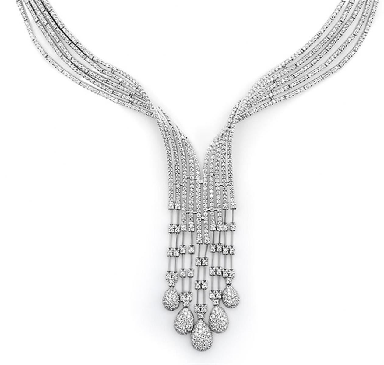 One 18k White Gold 8.98CTW Diamond Necklace, (SI1/H) - Product Specification: Stone: Diamond Stone 3: 24 Stone 3 Custom: Women Stone 4 Custom: SI1 / H Stone Clarity: SI1 Stone Color: H Stone Weight: 8.98 Weight: 1