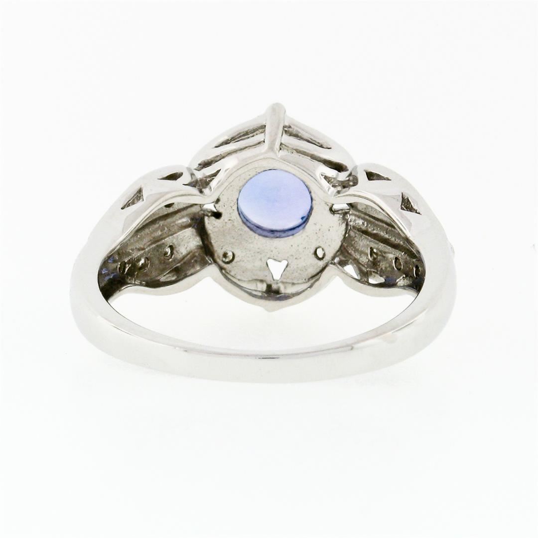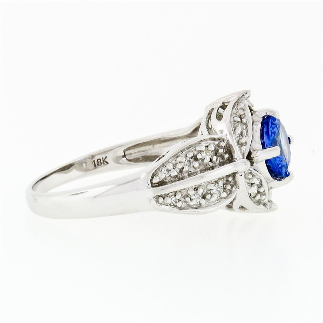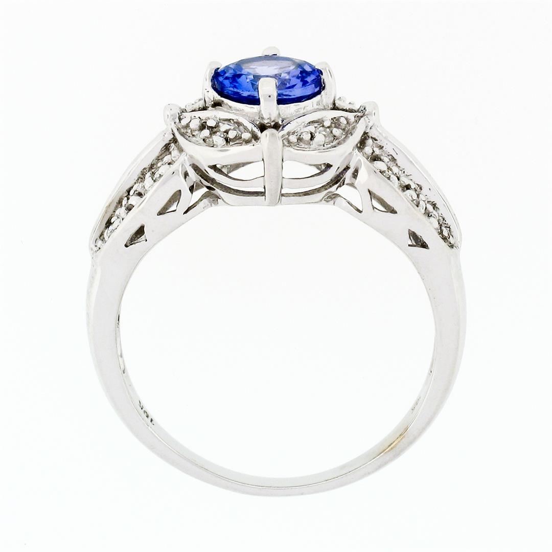 18k White Gold Brilliant Tanzanite Solitaire w/ Diamond Halo Star Flower Ring