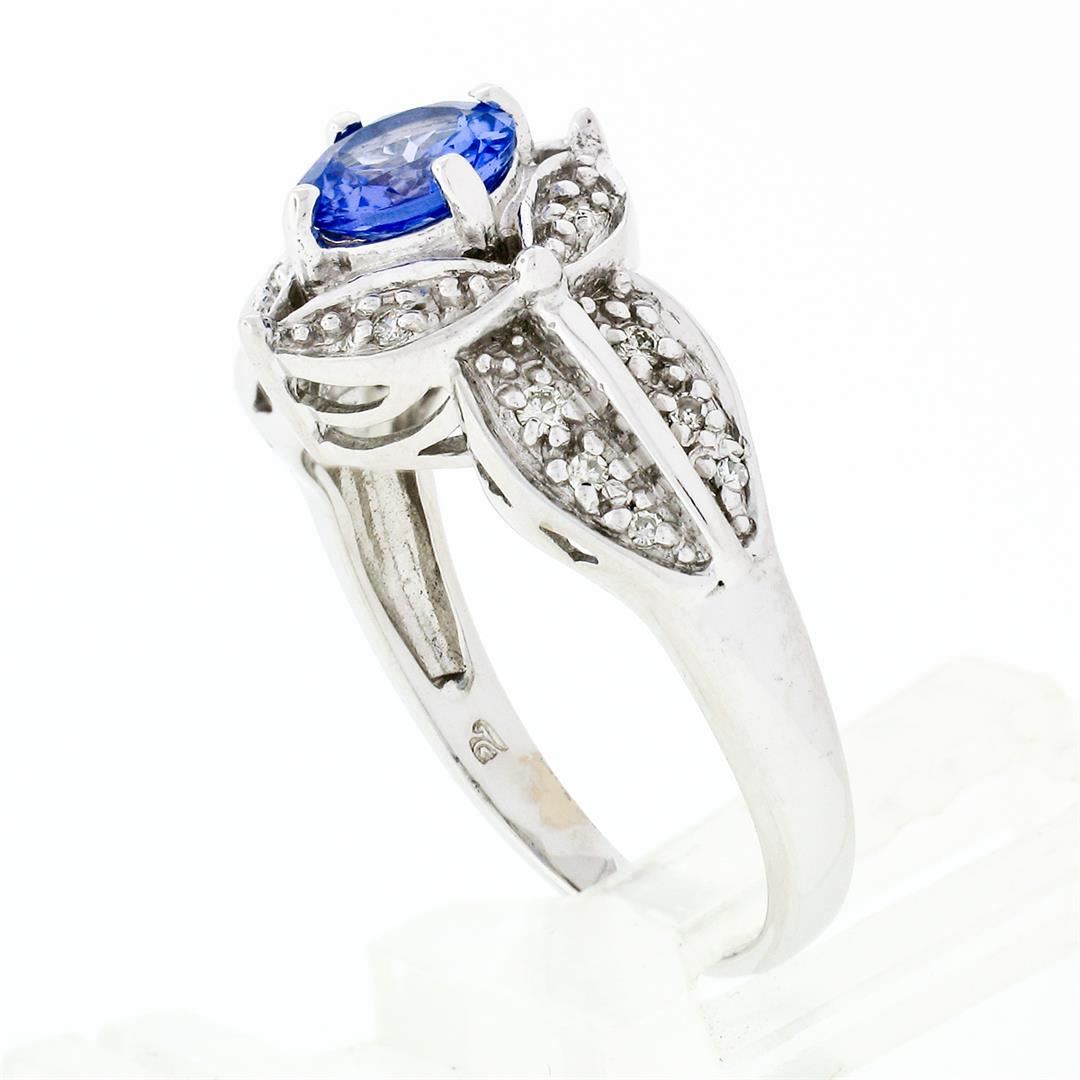 18k White Gold Brilliant Tanzanite Solitaire w/ Diamond Halo Star Flower Ring