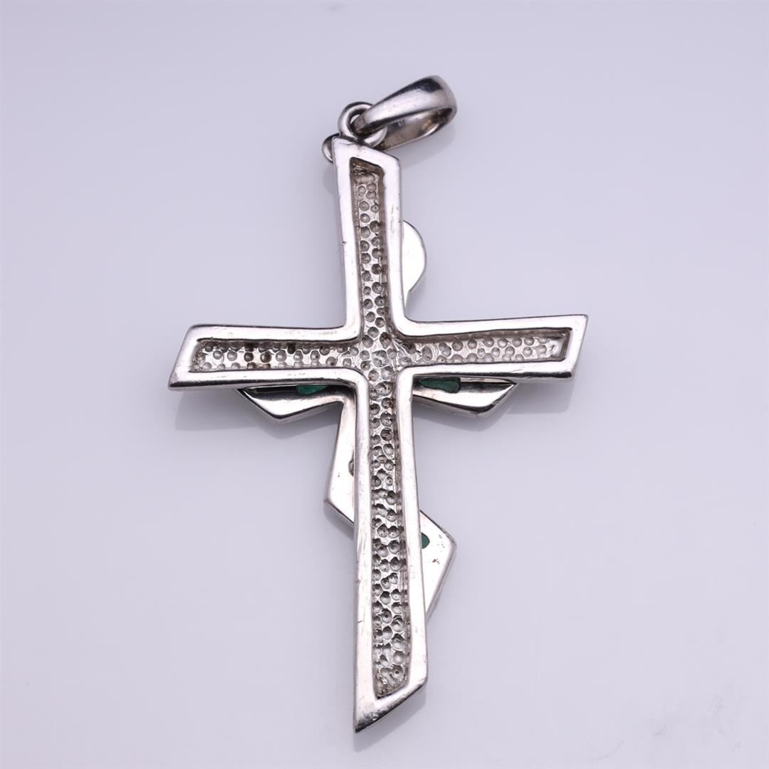 18k White Gold & Emerald Abstract Cross by Fernando Hernandez containing twelve emeralds weighing approximately 2.0 cts. Total weight is 12.6 gm. Estimated retail value $2,890.