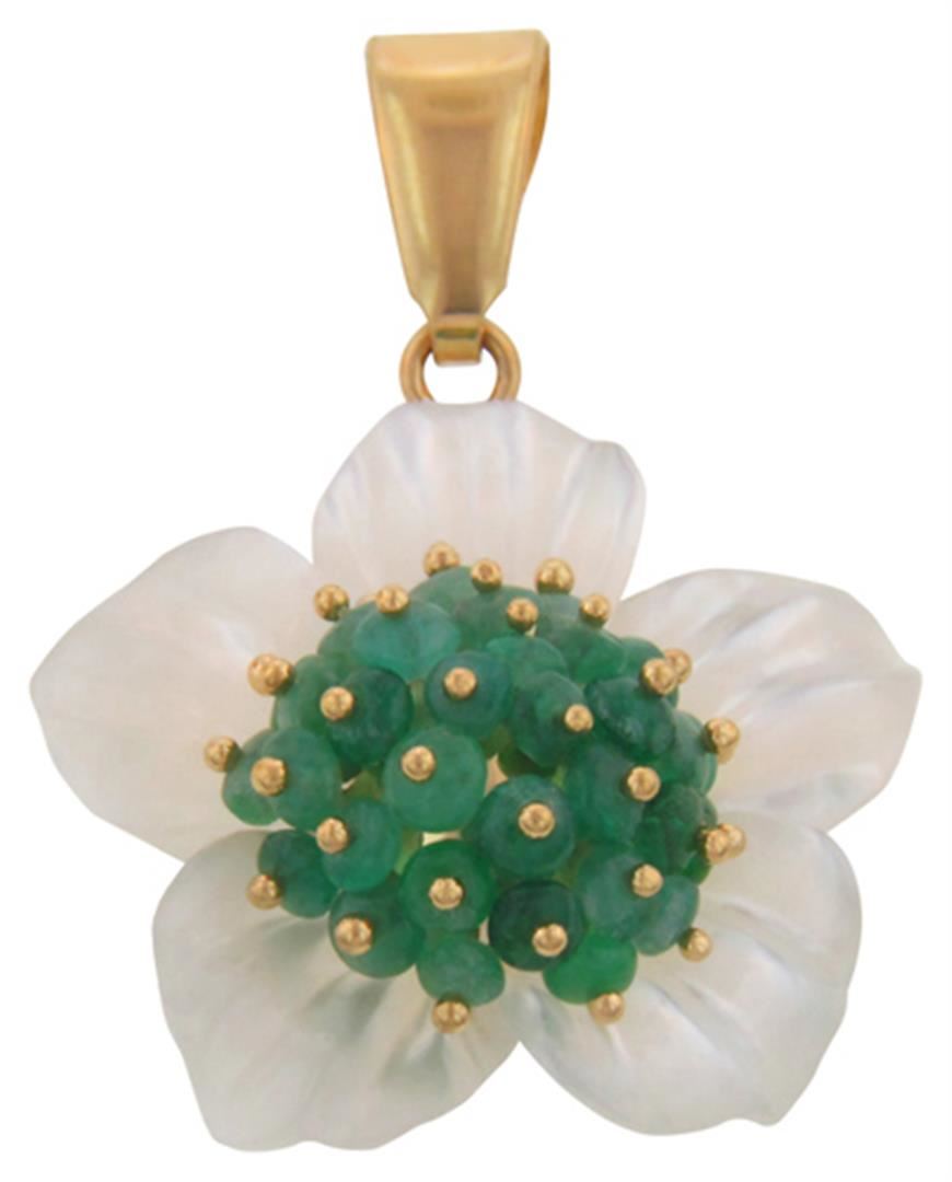 One 18k Yellow Gold 0.00CTW Mother Of Pearl and Emerald Pendant - Product Specification: Stone: Mother Of Pearl Stone 2: Emerald Stone 3 Custom: Women Weight: 1 Width: 25.0mm