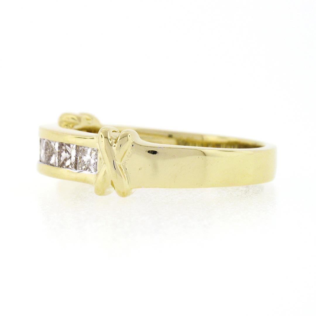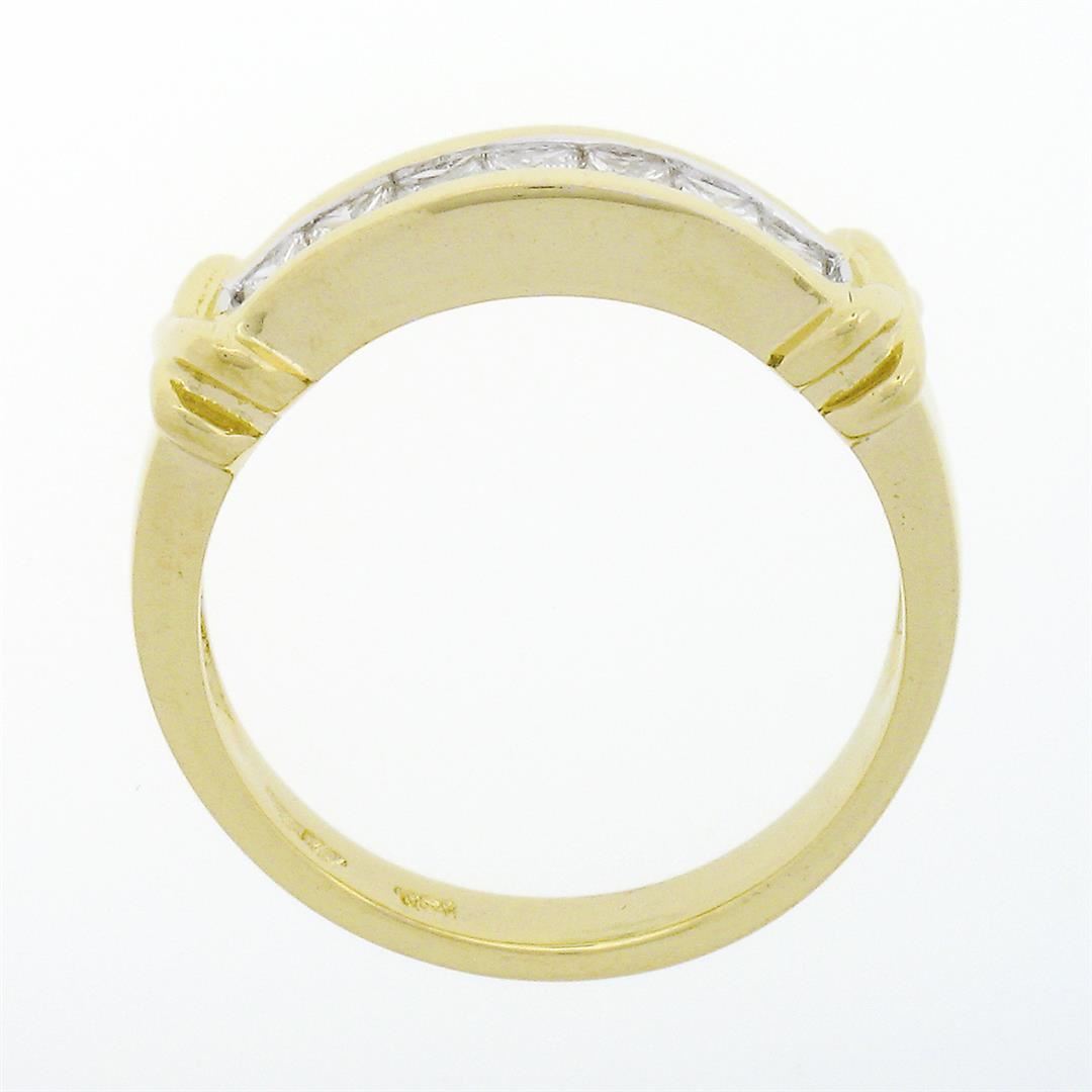 A solid 18k yellow gold band ring, with 7 princess cut natural diamonds (G/H - VS2/SI2 ; 0.70ctw). The ring is size 6.5, weighs a total of 5.11 grams, and measures 6.0mm wide.