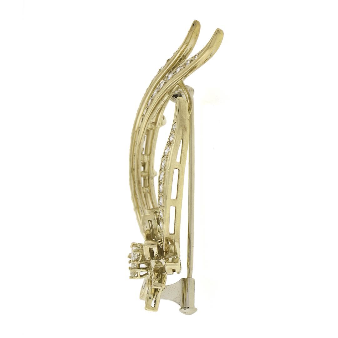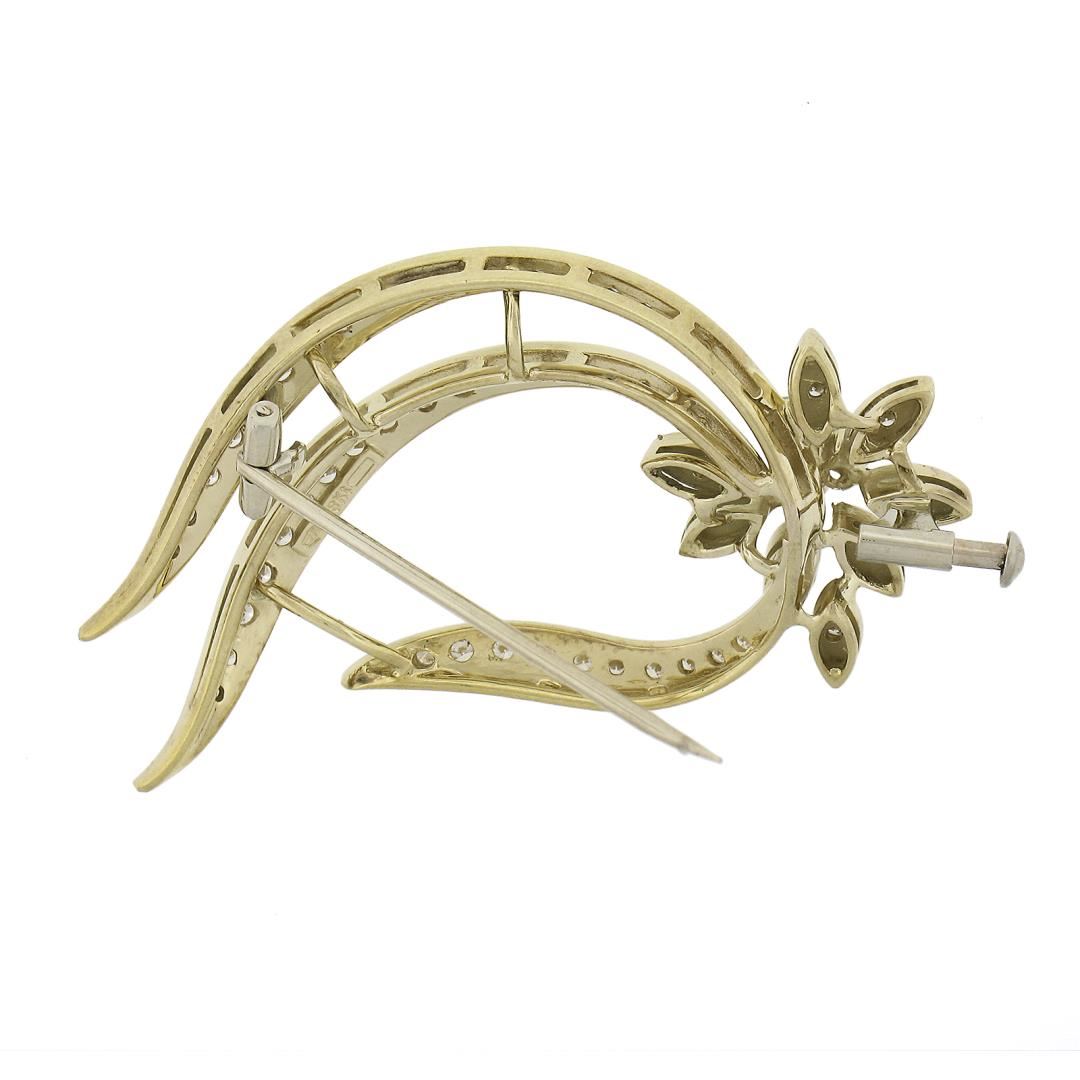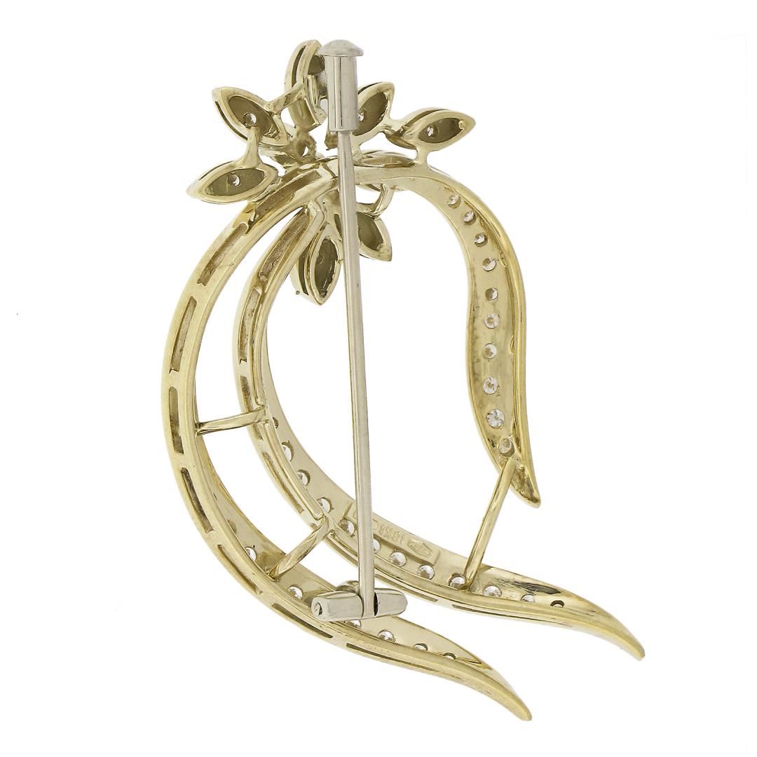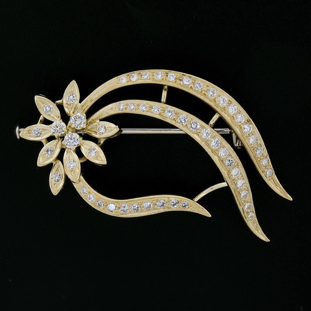 18k Yellow Gold 0.70ctw Round Brilliant Cut Diamond Open Work Floral Pin Brooch
