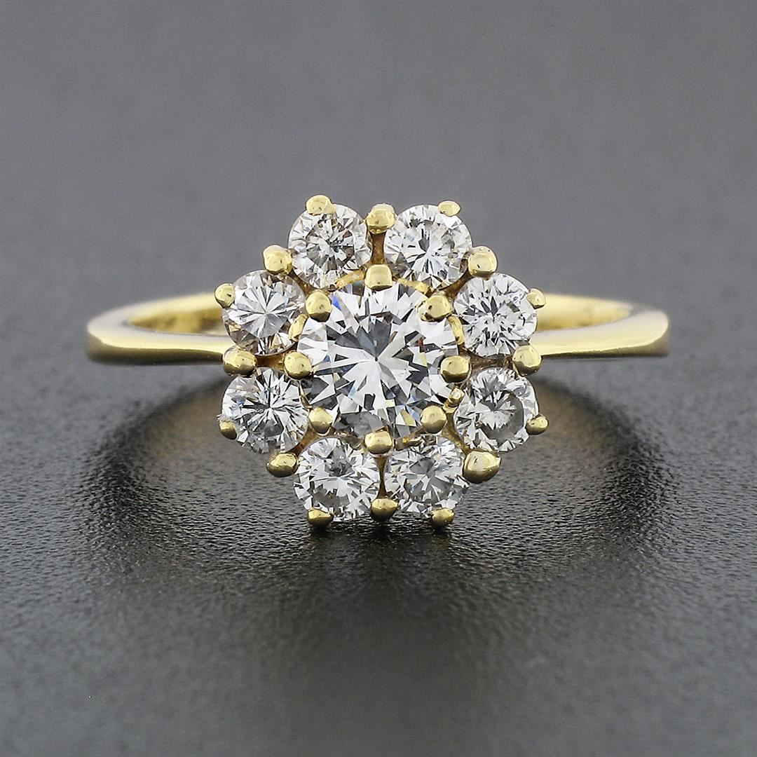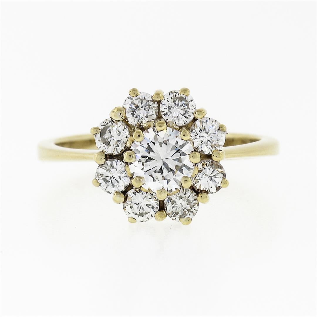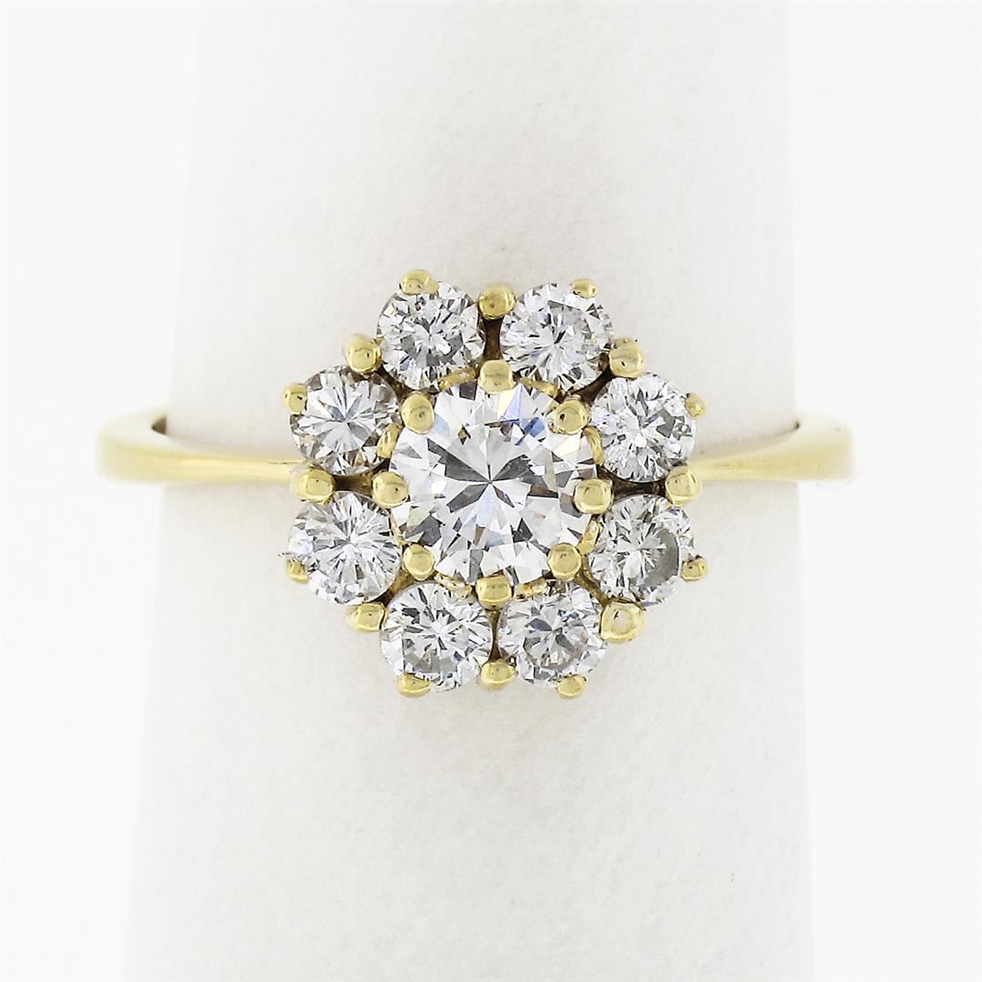 18k Yellow Gold 0.93 ctw Fine Round Brilliant Diamond Petite Flower Cluster Ring