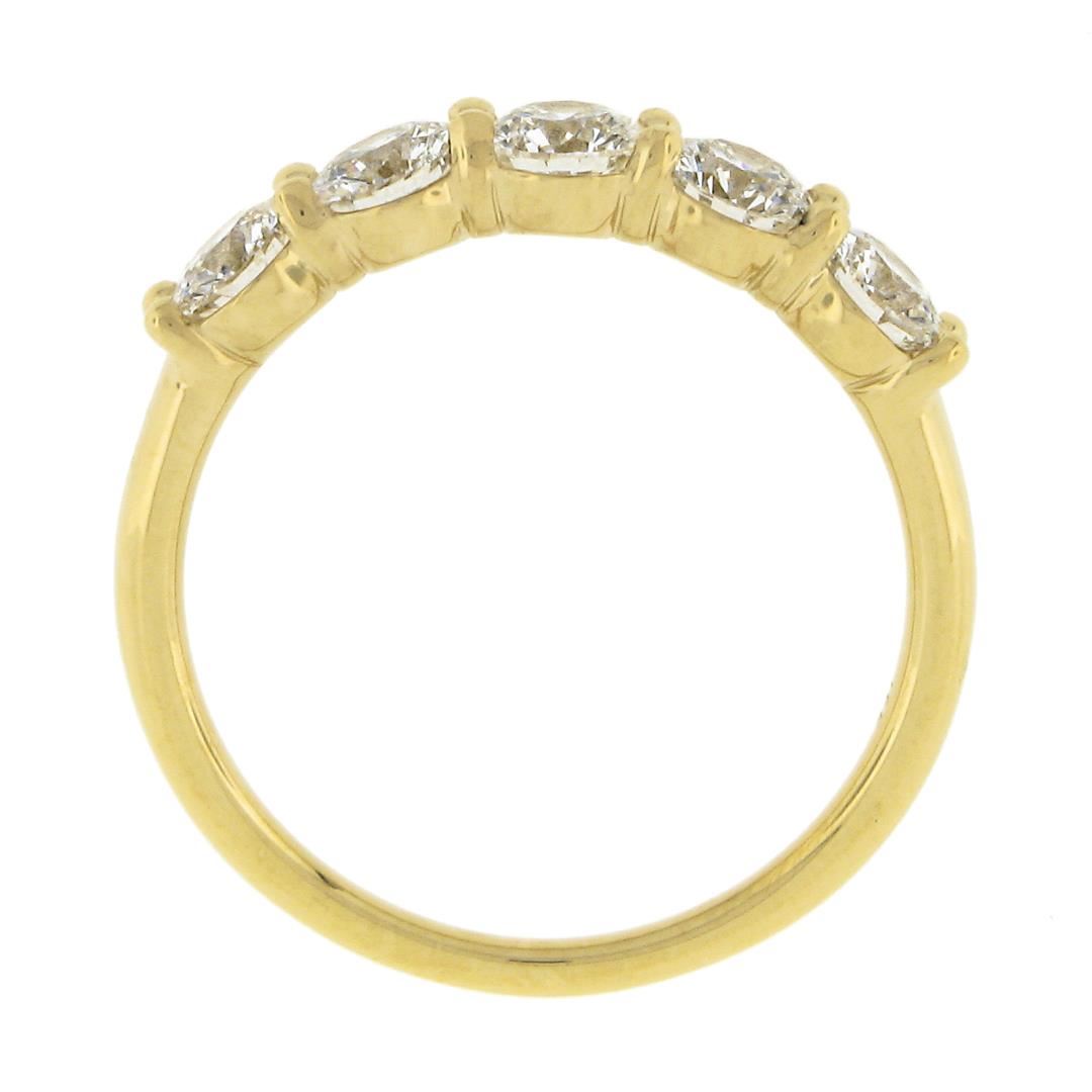 A new solid 14k yellow gold band ring, with 5 round ideal cut natural diamonds (F/G Color - VS1/VS2 ; 1.22ctw). The ring is size 6.5, weighs a total of 2.94 grams, and measures 4.1mm wide.