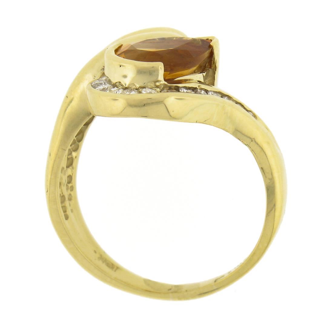 18k Yellow Gold 1.98 ctw Pear Cut Citrine & Channel Diamond Grooved Bypass Ring
