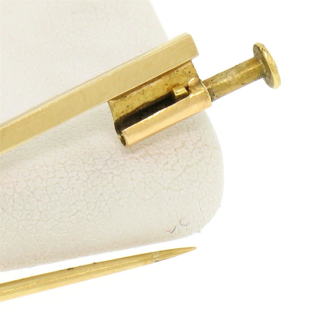 One Vintage 18k Yellow Gold 2.50ct Oval Bezel Set Pink Star Sapphire Bar Pin Brooch. Item Details: Material: 18k Solid Yellow Gold, Total Weight: 3.6 Grams, Stone(s): (1) Natural Genuine Star Sapphire - Oval Cabochon Cut - Bezel Set - Deep Pink to Lavender Color - 8.10x6.80mm / 2.50ct (approx.), Closure: Pin Back w/ Slide Barrel Lock, Overall Height: 8.24mm, Overall Width: 42.80mm, Overall Thickness: 6.70mm, Condition: Vintage piece. Excellent condition!