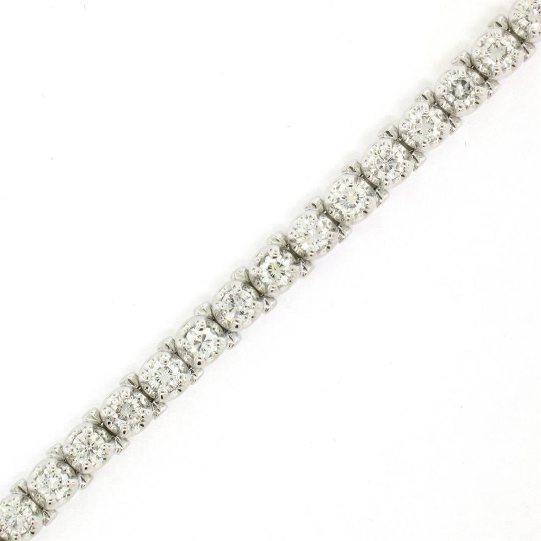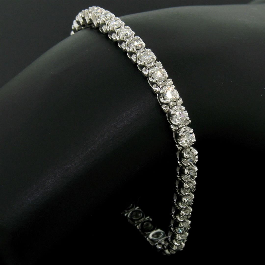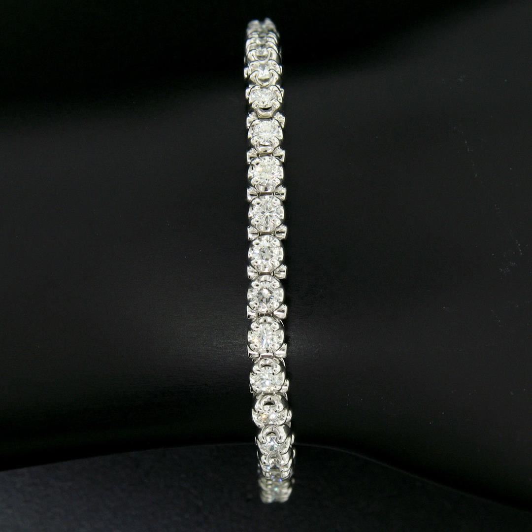 A brand new 18kt white gold tennis bracelet with 3.48ctw of round diamonds (G/H - VS1/VS2). It weighs a total of 17.56 grams, measures 4.6mm wide, and measures 7 inches in length.