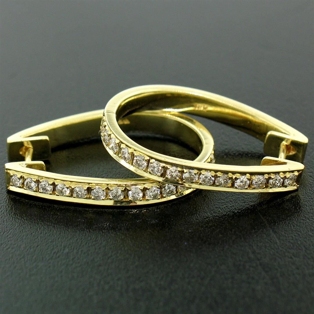 A pair of 18kt yellow gold hoop earrings pave set with 0.75ctw of round brilliant diamonds (F/G - VS1/VS2). The earrings measure approximately 22.95x18.45mm and weigh a total of 6.50 grams.
