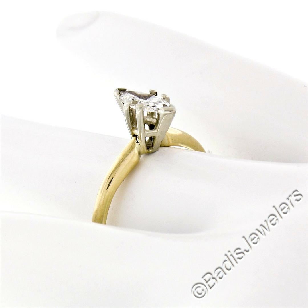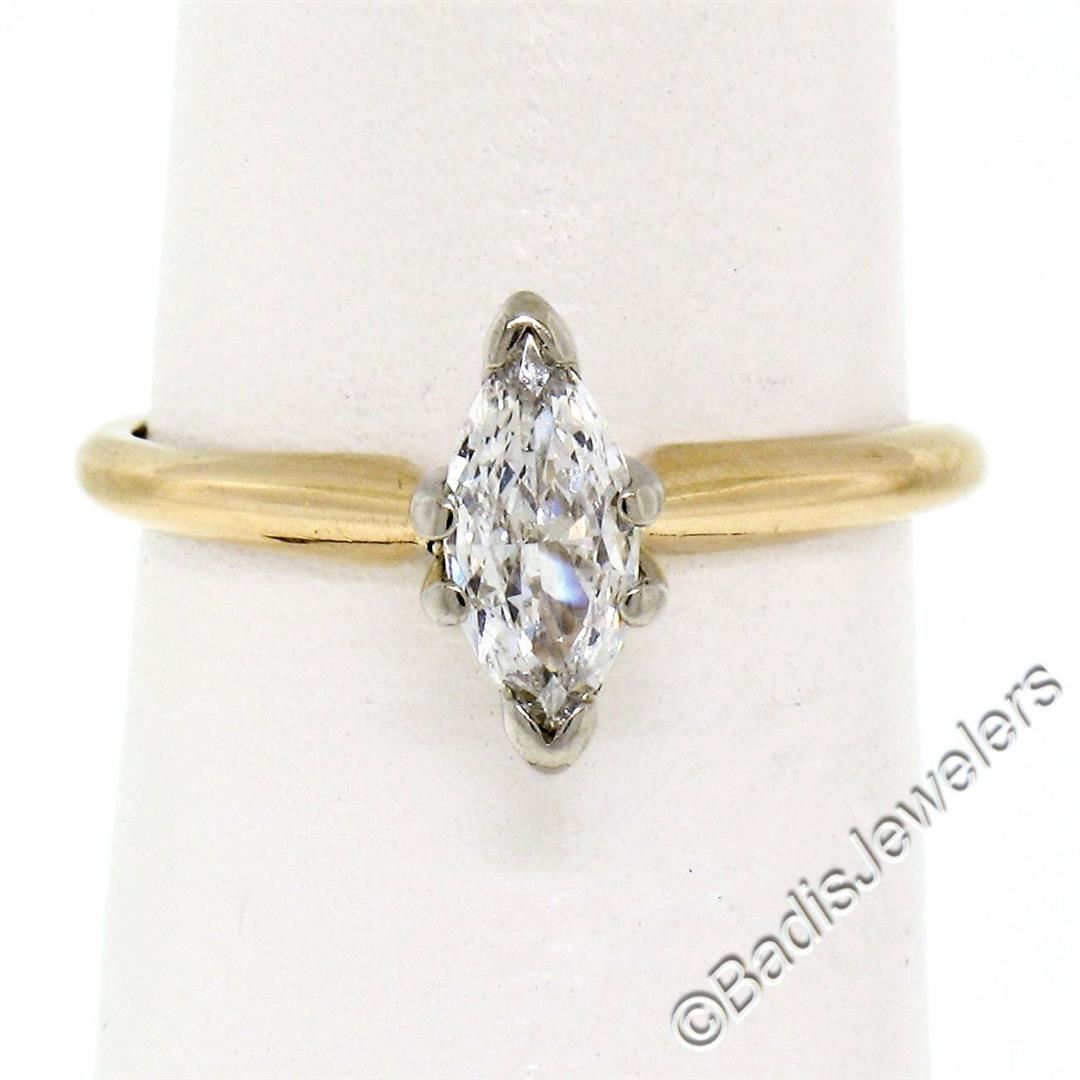 An 18kt yellow and white gold 0.38ct marquise diamond (H - VS1) solitaire engagement ring. The ring is size 6.0, weighs a total of 2.05 grams, and measures 9.55mm wide.