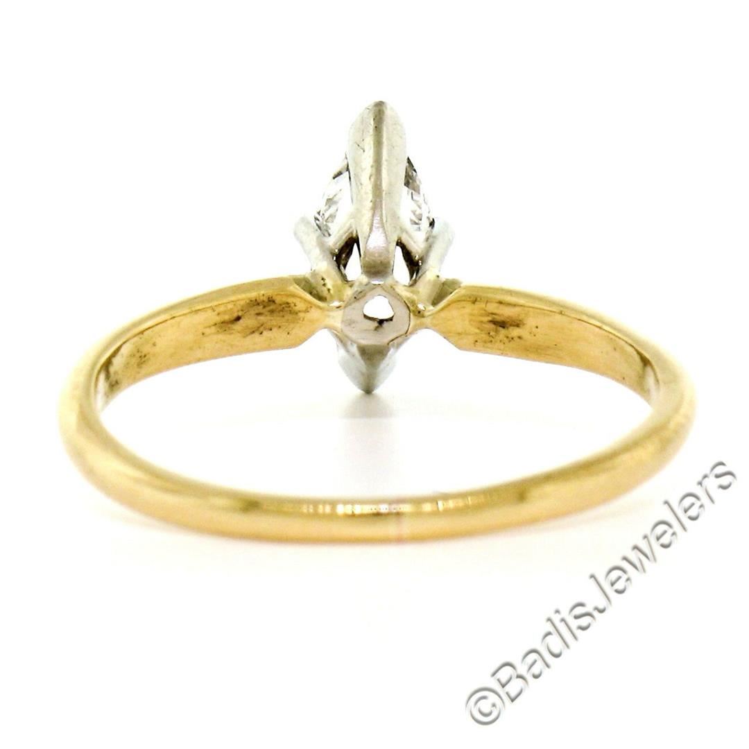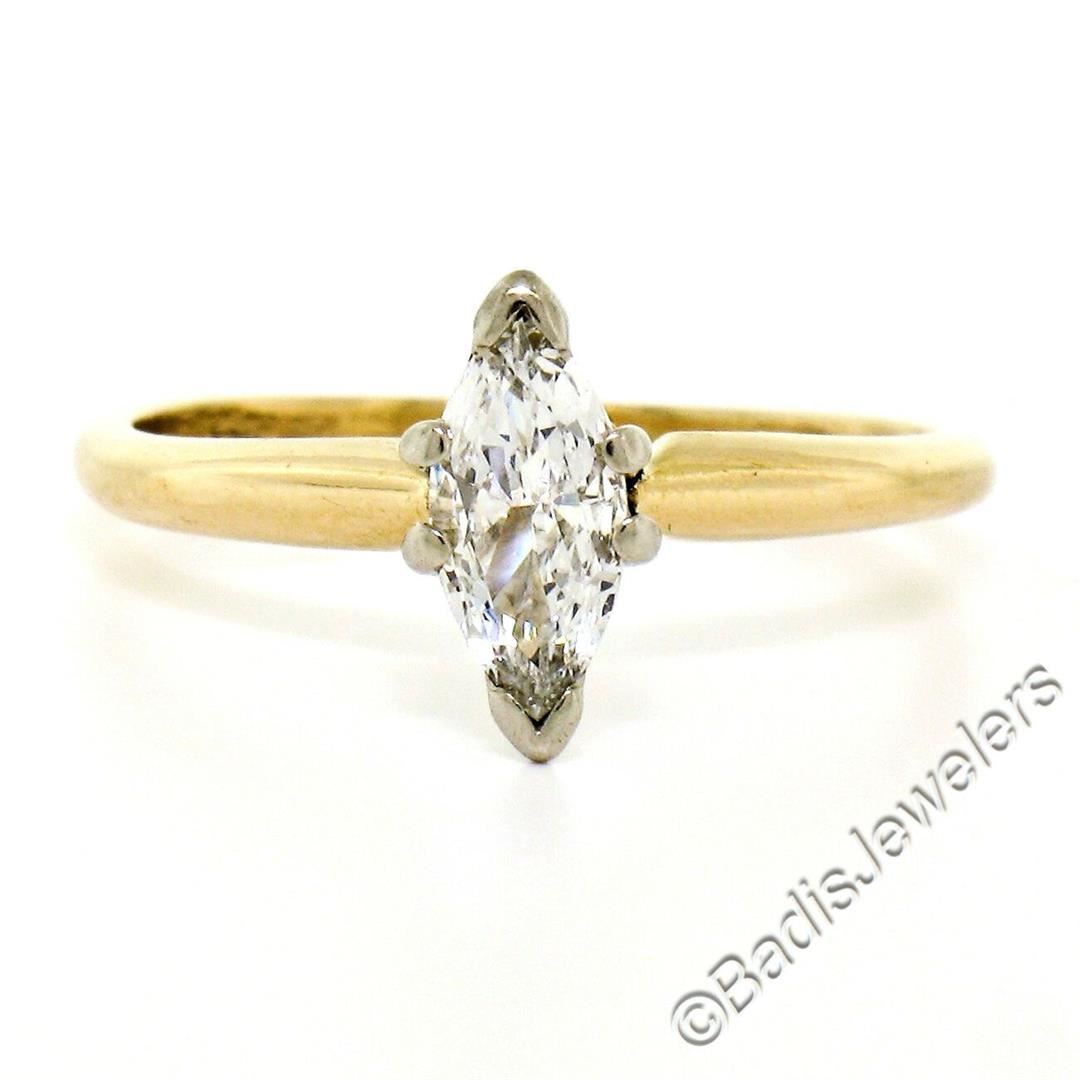 An 18kt yellow and white gold 0.38ct marquise diamond (H - VS1) solitaire engagement ring. The ring is size 6.0, weighs a total of 2.05 grams, and measures 9.55mm wide.