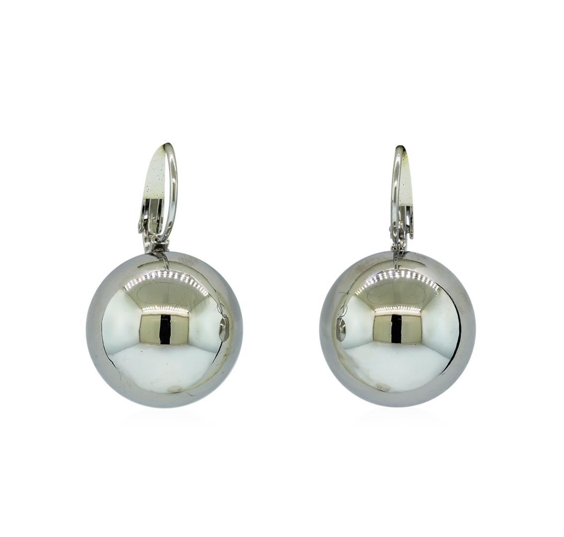 High end designer jewelry. 18mm Glossy Bead Drop Earrings - Silver Plated. Silver Plated French Clip Set. Silver. 1inch.