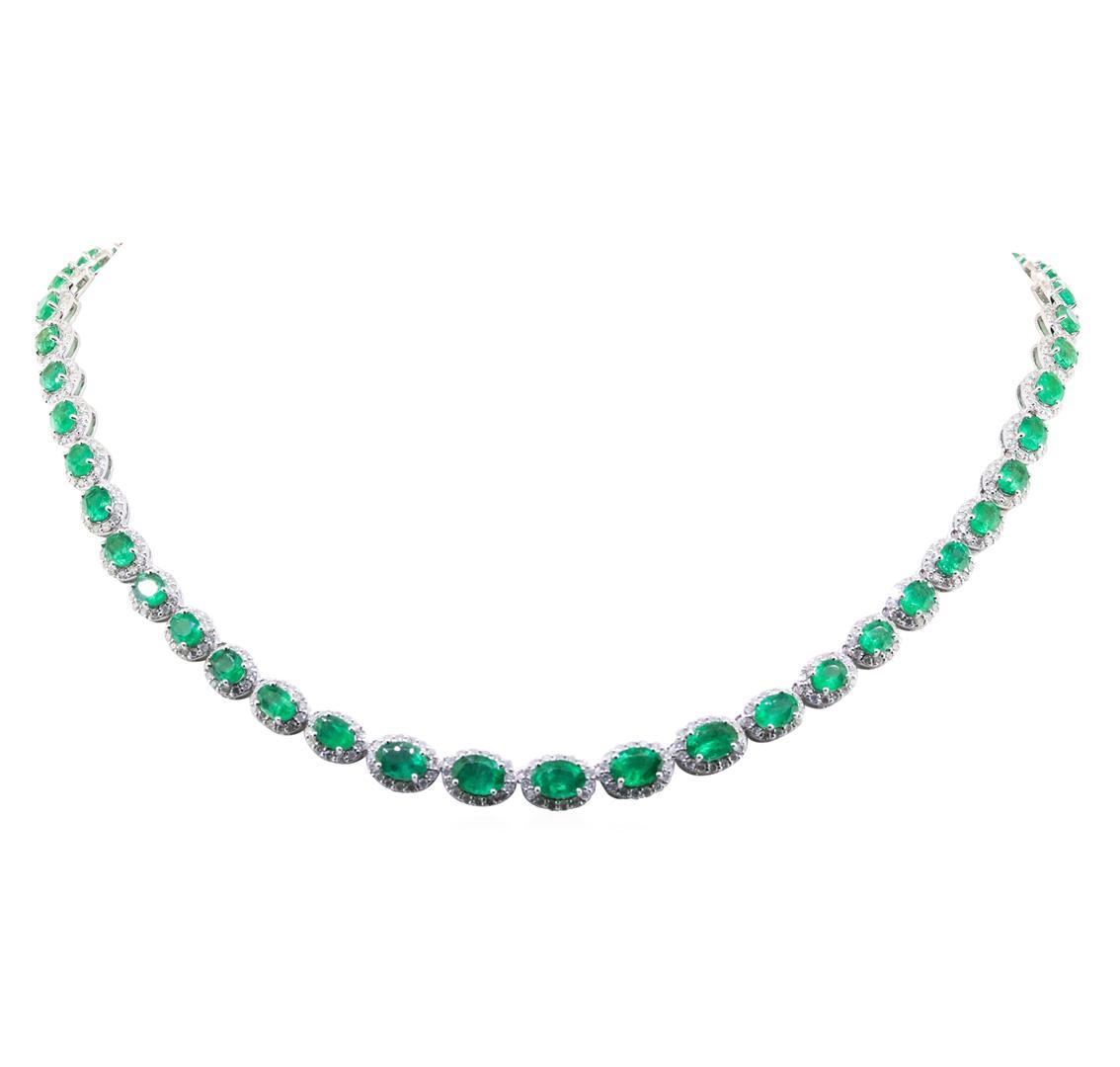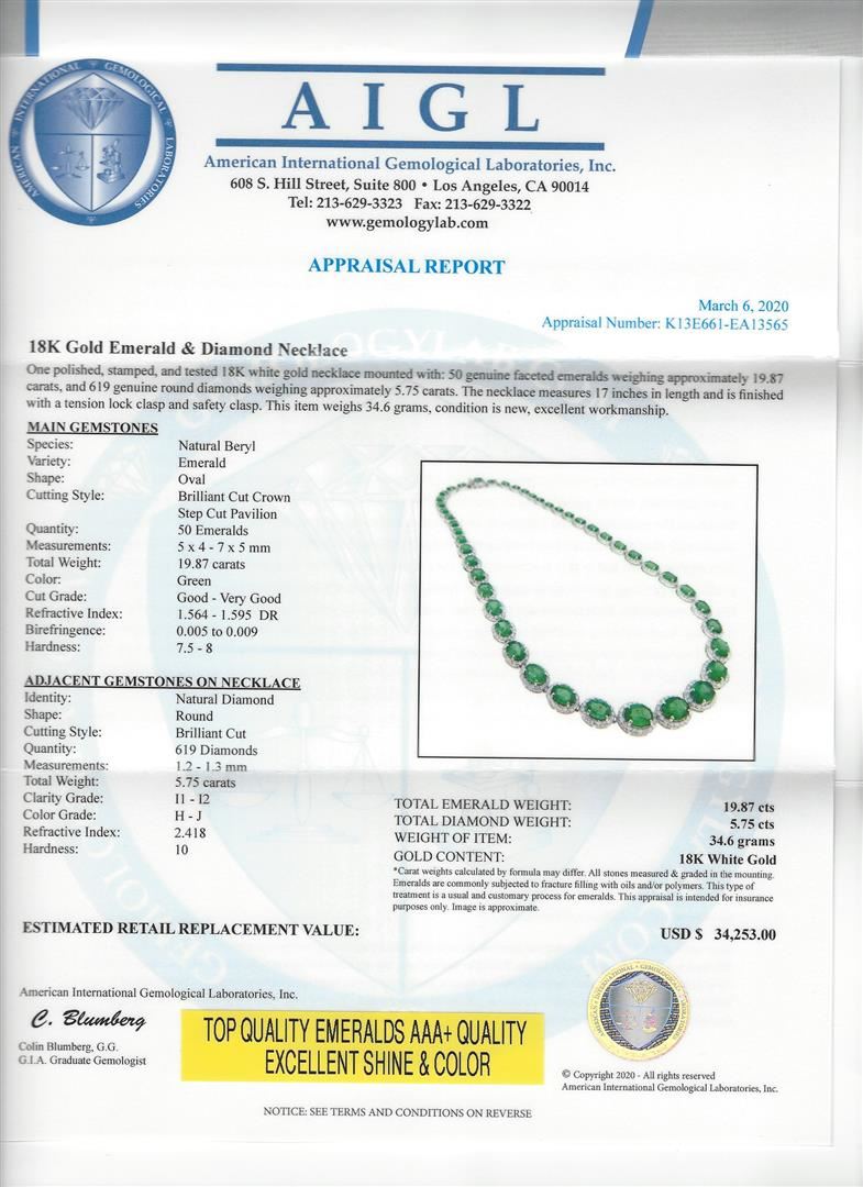 One 19.87ctw Emerald and Diamond Necklace - 18KT White Gold. AIG certified. See Appraisal for more details. AIG Appraised.
