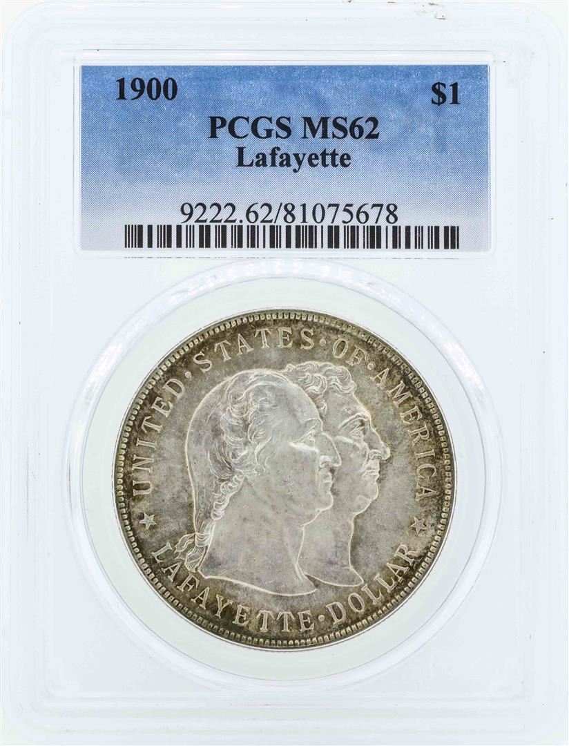 One 1900 $1 Lafayette Commemorative Dollar Coin PCGS MS62. PCGS Certified.