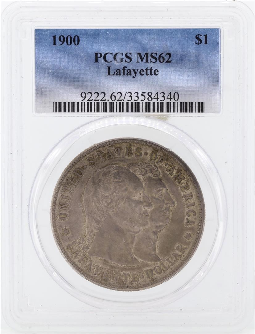 One 1900 $1 Lafayette Commemorative Silver Dollar Coin PCGS MS62. PCGS Certified.