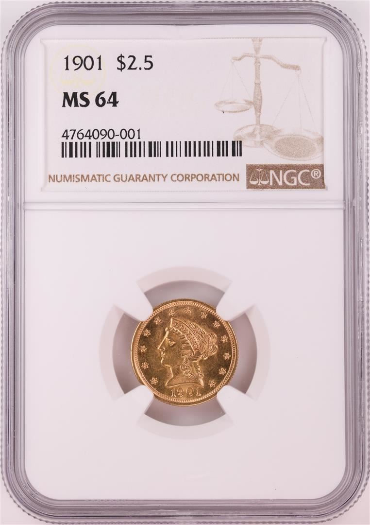 One 1901 $2.5 Liberty Head Quarter Eagle Gold Coin NGC MS64.
