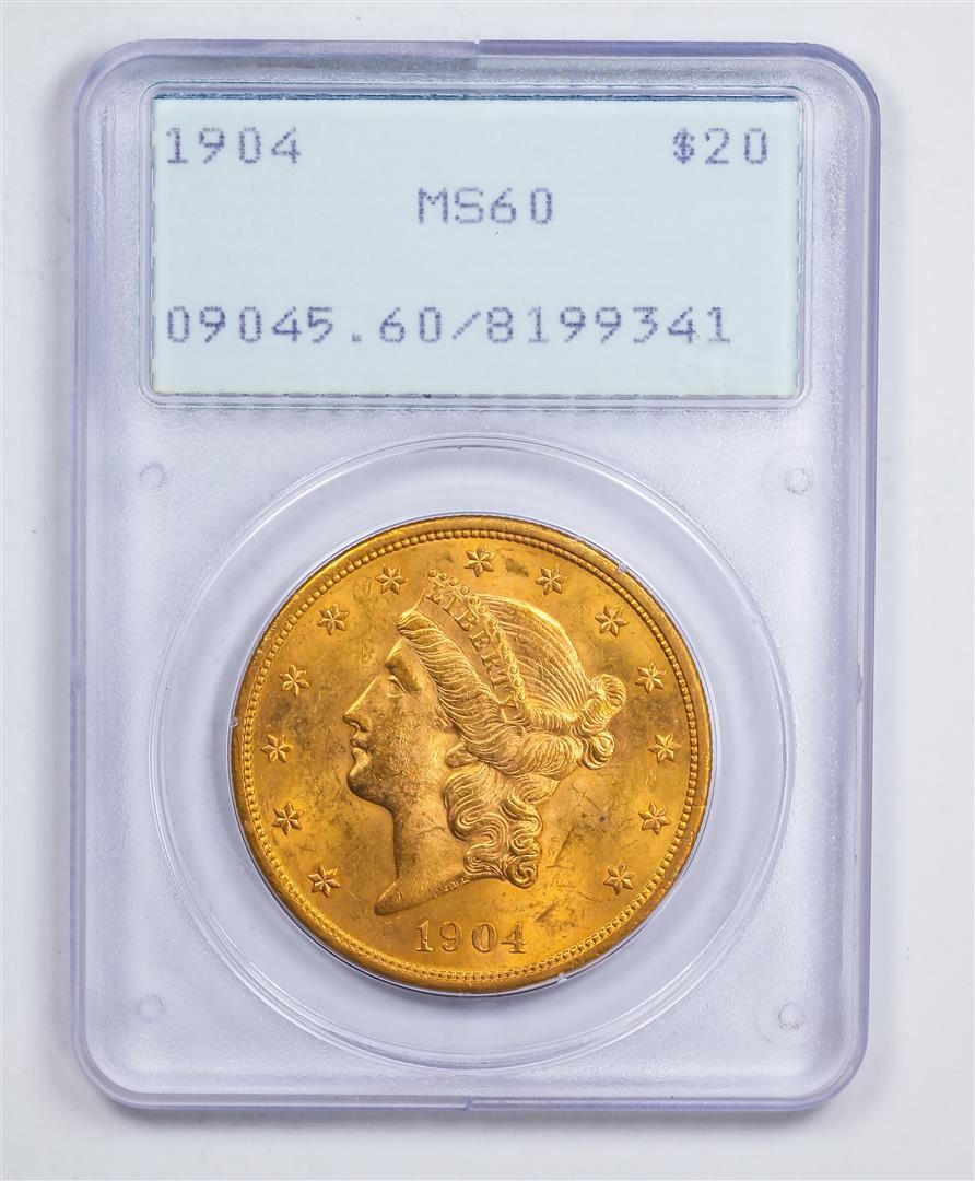 One 1904 $20 Double Eagle Gold Coin PCGS MS60.