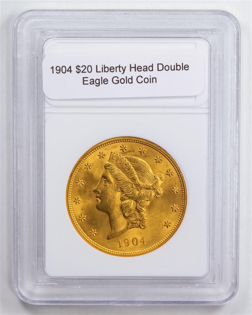 One 1904 $20 Liberty Head Double Eagle Gold Coin.