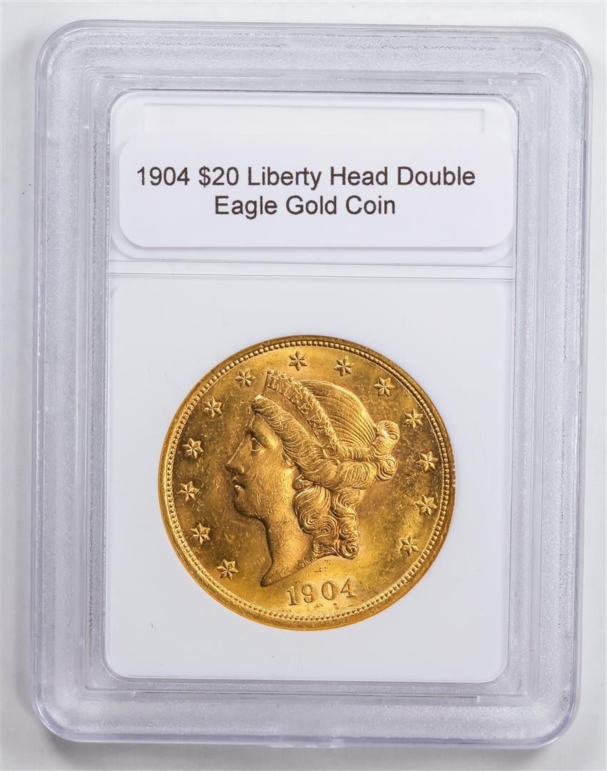 One 1904 $20 Liberty Head Double Eagle Gold Coin.