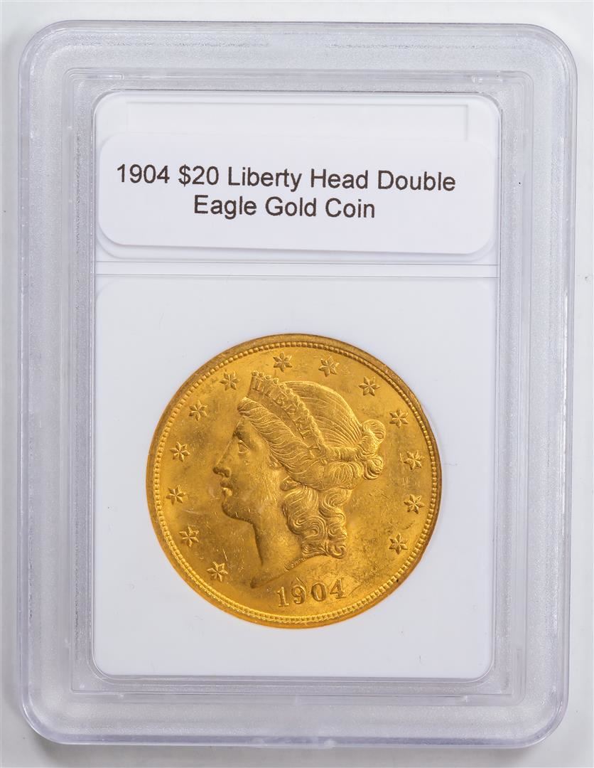 One 1904 $20 Liberty Head Double Eagle Gold Coin.