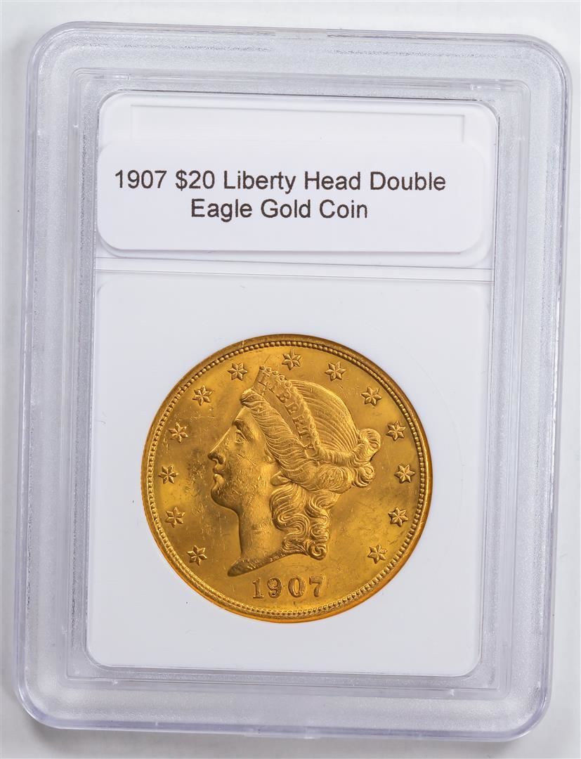 One 1907 $20 Liberty Head Double Eagle Gold Coin.