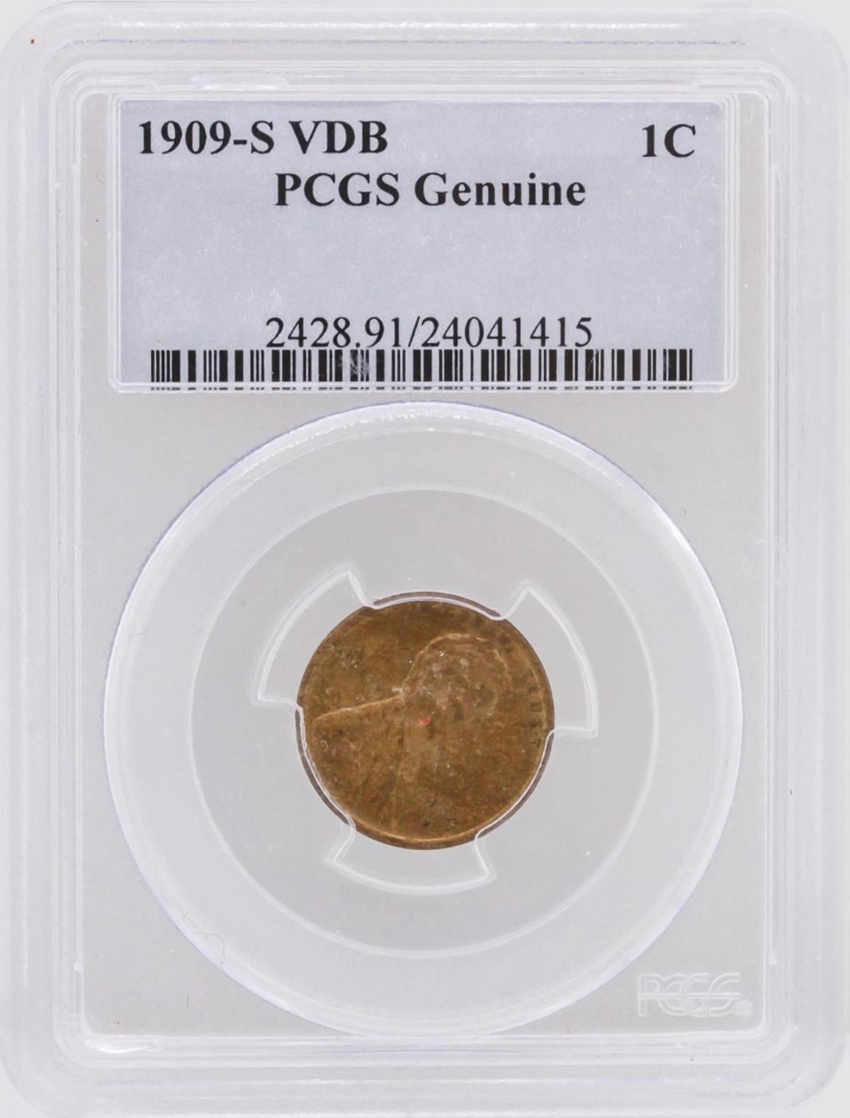 One 1909-S VDB 1 Penny Genuine Lincoln Head Copper Coin