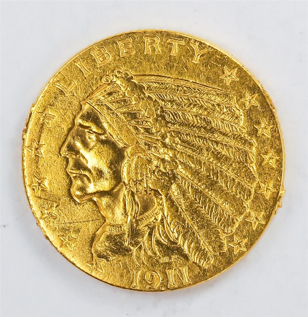 One 1911 $2.5 Indian Head Quarter Eagle Gold Coin C.