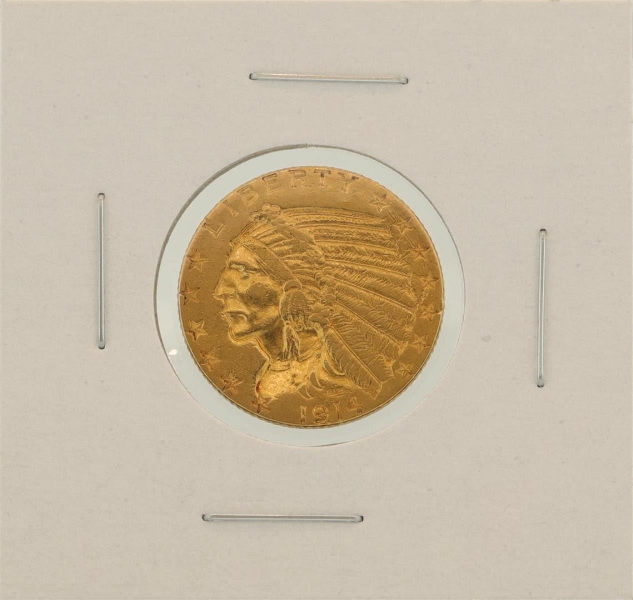 One 1914 $5 Indian Head Half Eagle Gold Coin.